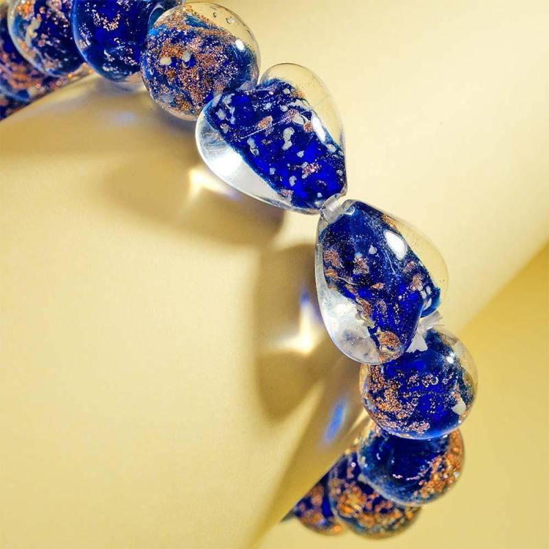 Bracelet De Perles Extensibles En Verre Luciole Cœur À Cœur Bleu Foncé Qui Brille Dans Le Noir Bracelet Lumineux