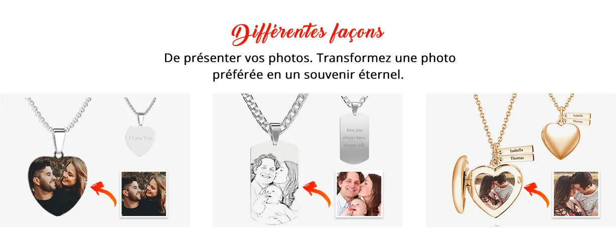 Collier Photo Médaillon Coeur En Relief à Graver Plaqué Platine