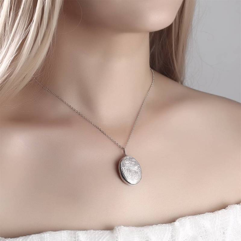 Collier Photo Médaillon Ovale En Relief à Graver Plaqué Platine