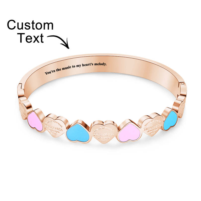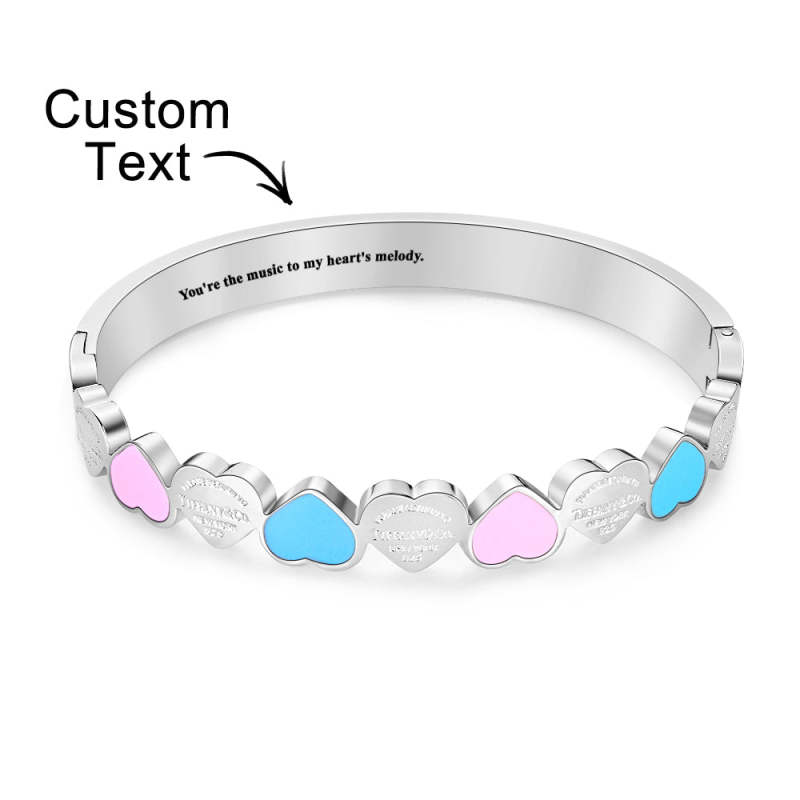 Un bracelet doux et ravissant, ce bracelet a pour thème des formes d'amour colorées. Il est non seulement mignon et charmant, mais peut également être personnalisé avec un texte court pour ajouter une personnalisation et une signification commémorative.