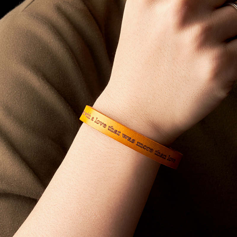 Le bracelet en cuir pour homme avec texte personnalisé est fait de cuir de haute qualité, qui a une texture délicate et montrera progressivement un style rétro unique au fil du temps. La flexibilité du cuir le rend très confortable à porter et vous ne vous sentirez pas mal à l'aise même si vous le portez longtemps.