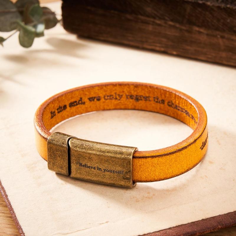 Bracelet En Cuir Vintage Gravable, Bracelet À Boucle Magnétique Simple, Cadeaux Pour Hommes