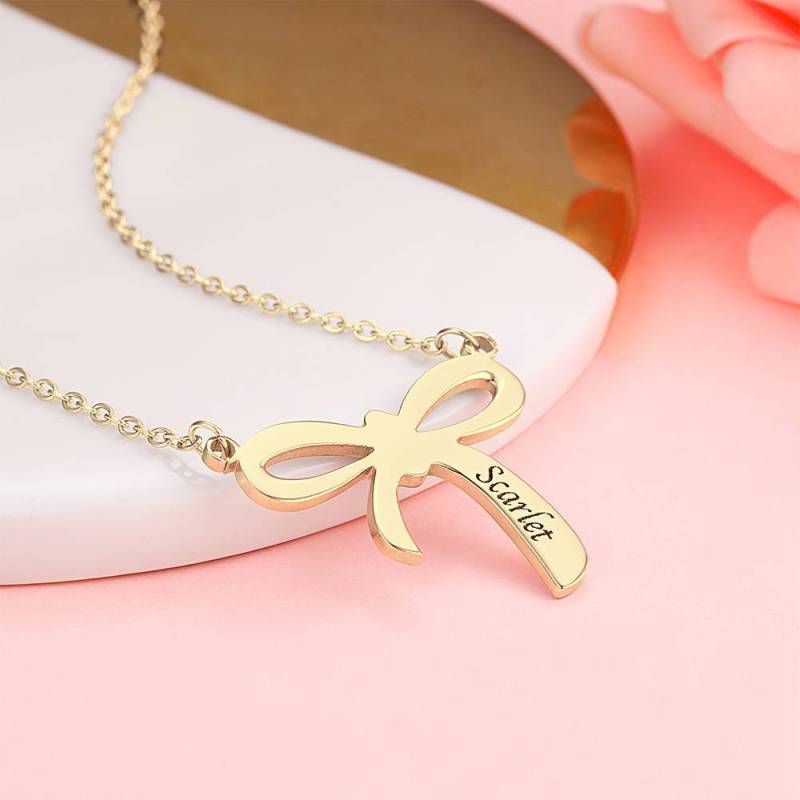 Collier Gravé Avec N?ud Papillon 14k Or Plaqué