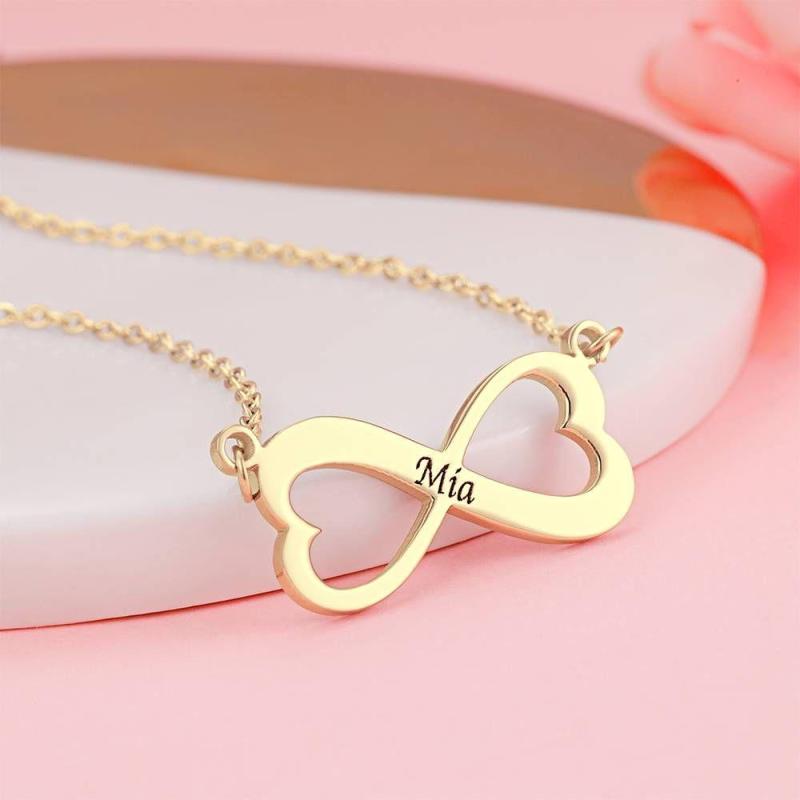 Collier Gravé Avec Infini 14k Or Plaqué