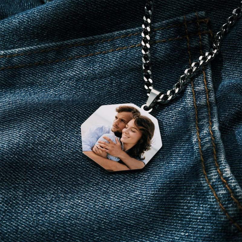 Nos colliers avec photo gravée sont le cadeau parfait pour les hommes. Fabriqués en acier inoxydable durable, ces colliers peuvent être personnalisés avec votre propre image et texte. Choisissez parmi plusieurs formes, notamment rectangle, carré, rond, en forme de cœur, pentagone et octogone. Vous pouvez également sélectionner un filtre noir et blanc ou une impression en couleur. Surprenez votre petit ami avec un cadeau significatif et personnalisé qu'il chérira pour toujours.