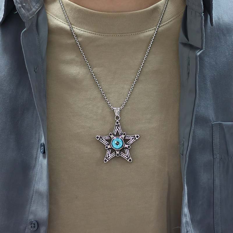 Collier Étoile À Six Branches Pour Hommes, Bijoux Oeil Du Diable À La Mode