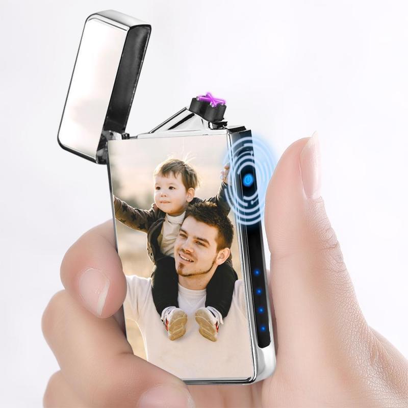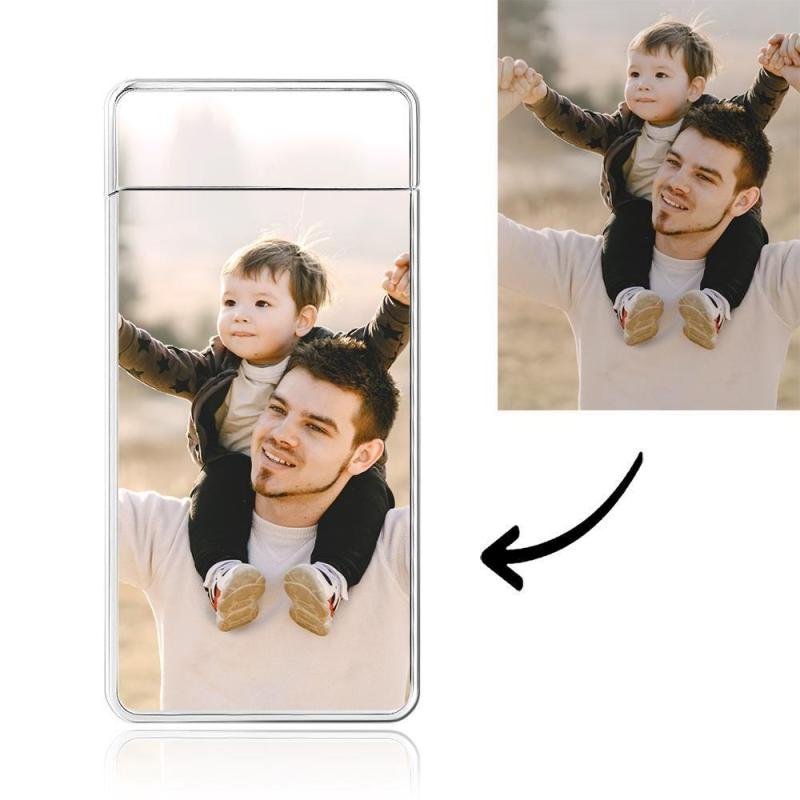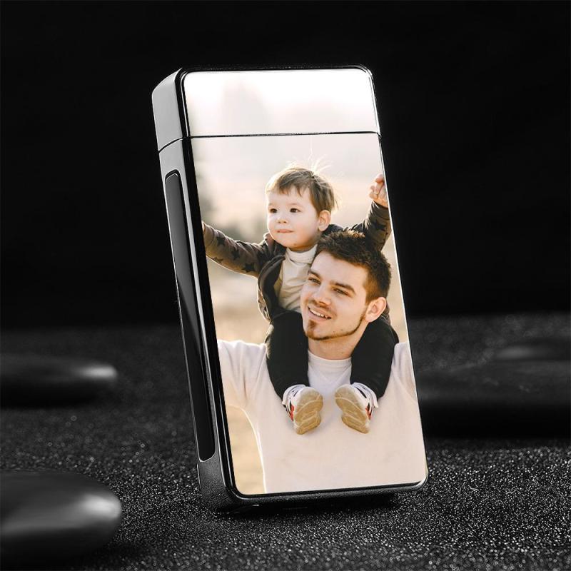 Cadeaux De Fête Des Pères Photo Gravé Briquet Personnalisé Pour Papa Noir (Pas De Kérosène Inclus)