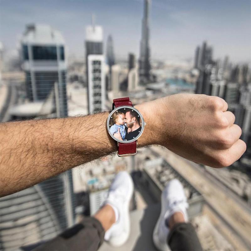 Surprenez votre bien-aimé avec une montre photo personnalisée qui est purement faite sur mesure pour s'adapter à toute personnalité. L'image du dessin est directement imprimée à l'intérieur de la surface de la montre. Une montre photo personnalisée fait toujours un beau cadeau et ne se démodera jamais. Nous pouvons personnaliser l’inverse de la montre avec un message. Gravé avec soin, il rappelle à jamais votre message. Cette montre est notre chef-d’?uvre emblématique, la fusion parfaite entre minimalisme et sophistication. Habillé ou baissé, il est s?r de ponctuer le look et constituera un cadeau parfait pour vos proches, voire un cadeau pour vous-même! Soufeel propose une multitude de bijoux personnalisés à des prix raisonnables et qui constituent d'excellents cadeaux pour toutes sortes d'occasions, comme les anniversaires, les vacances, les anniversaires et la fête des pères. Cadeau pour le Père - Montre Gravée Personnalisée, Personnaliser Votre Propre Montre en Photo avec Bracelet Rouge