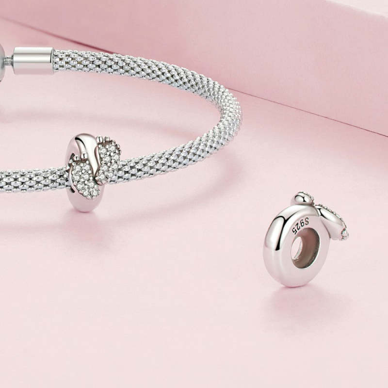 Empreintes De Pas Stopper Charm Spacer Charm Argent
