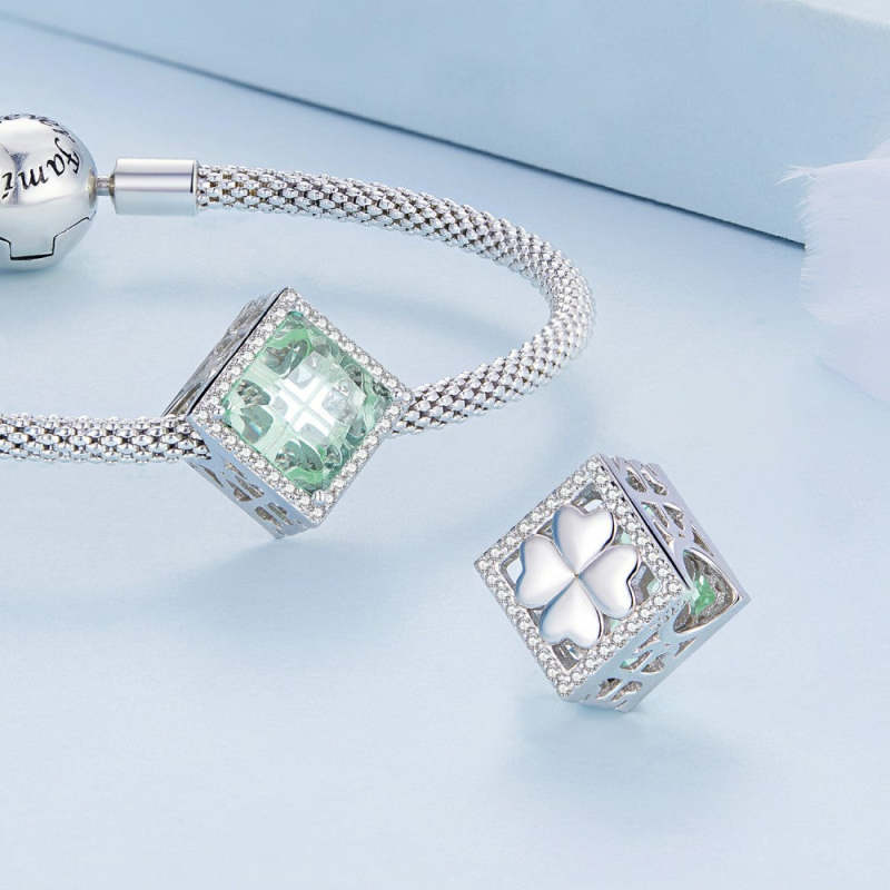 Charm Trèfle À Quatre Feuilles Vert Clair Argent