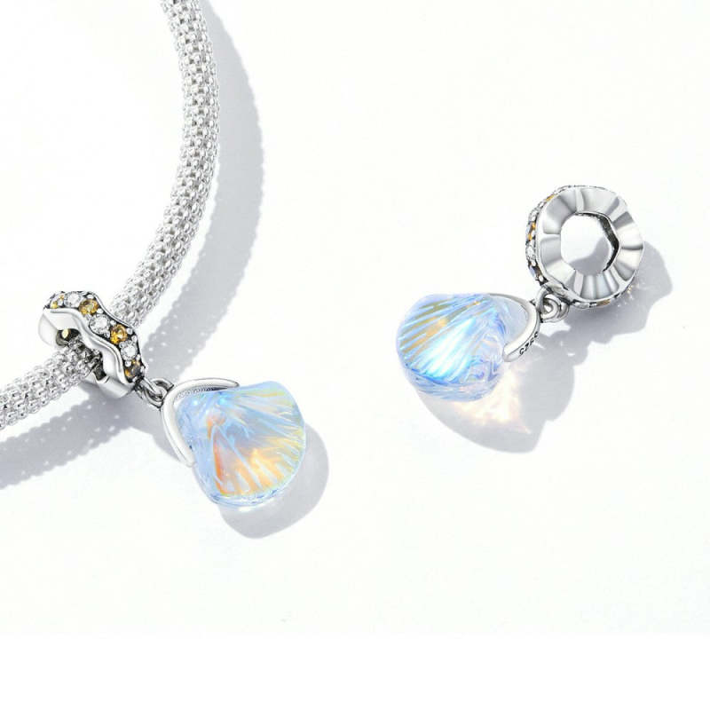 Charm Pendentif Coquille De Verre Argenté