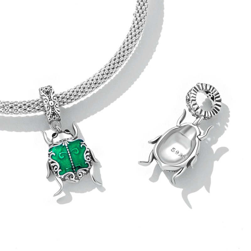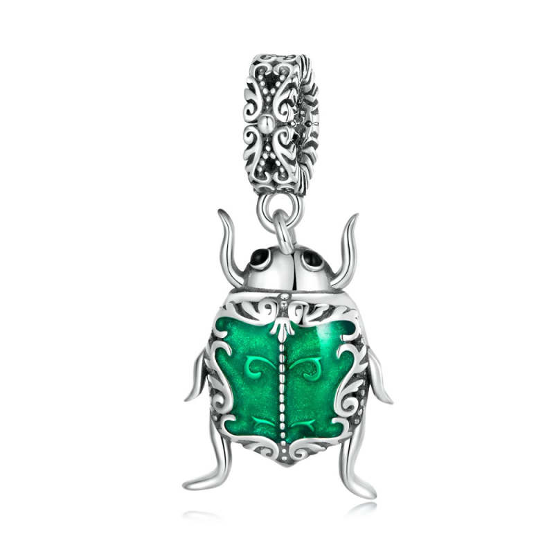 Charm Pendentif Elfe Coléoptère Vert Argenté