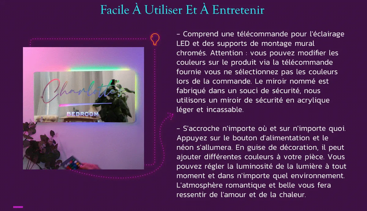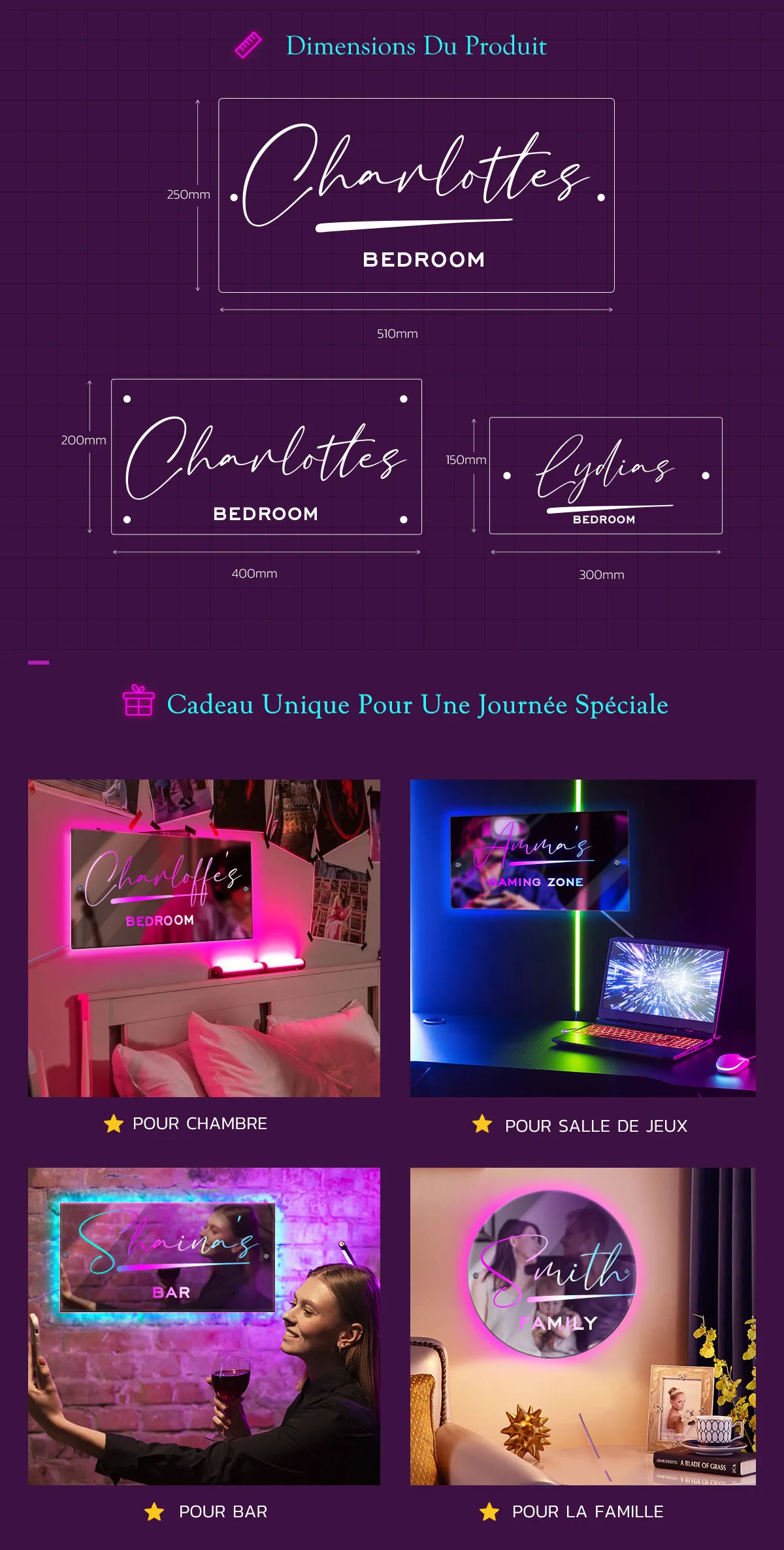Panneau Miroir Avec Nom Personnalisé, Panneau Lumineux Led Personnalisé Pour Chambre À Coucher, Cadeau Pour Enfants