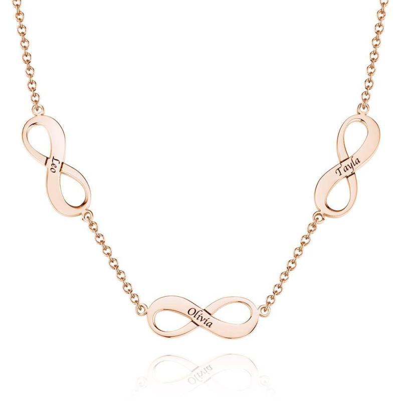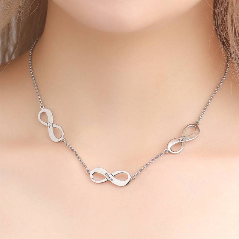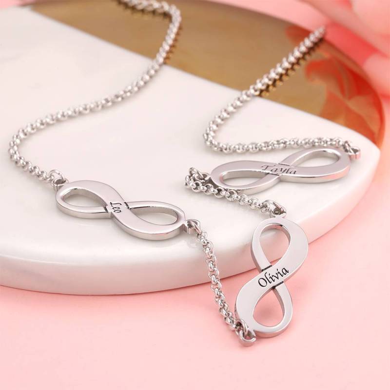 Collier Avec Infini Gravure De Trois Noms Platine Plaqué - Argent