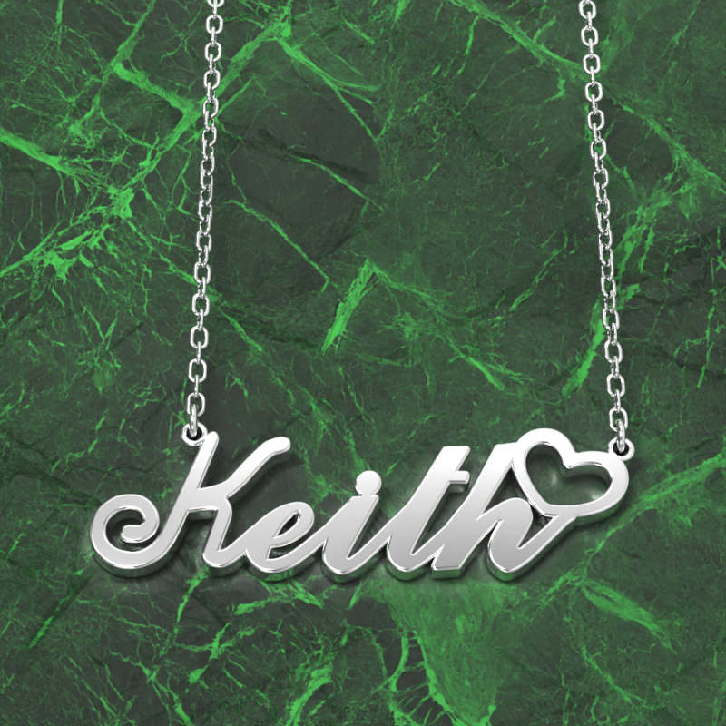 Keith Nom Collier Argent anti-oxydation Collier Personnalisé Avec Coeur, Cadeaux Personnalisés Pour Elle