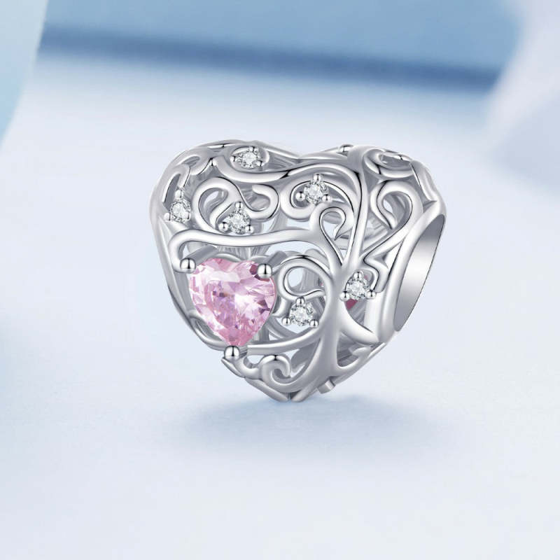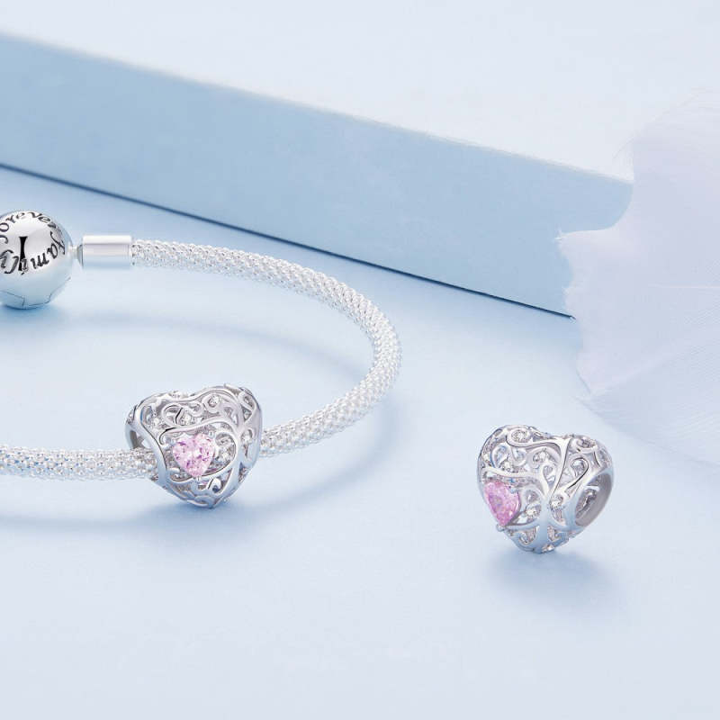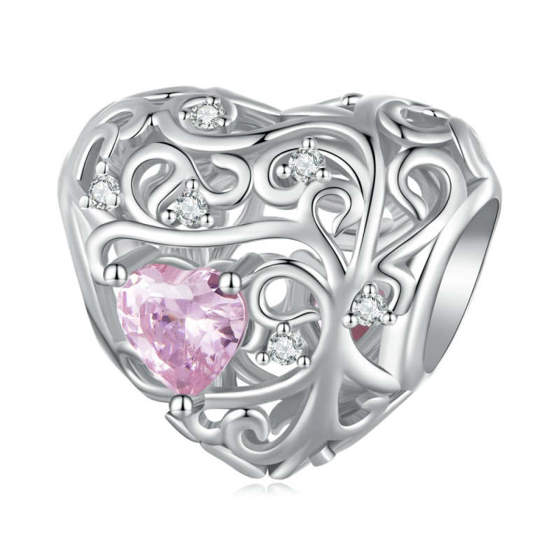 Breloque Zircon Rose Arbre De Vie Argent