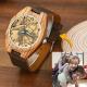 Montre Photo En Bois Gravé Pour Homme En Cuir Marron 45mm