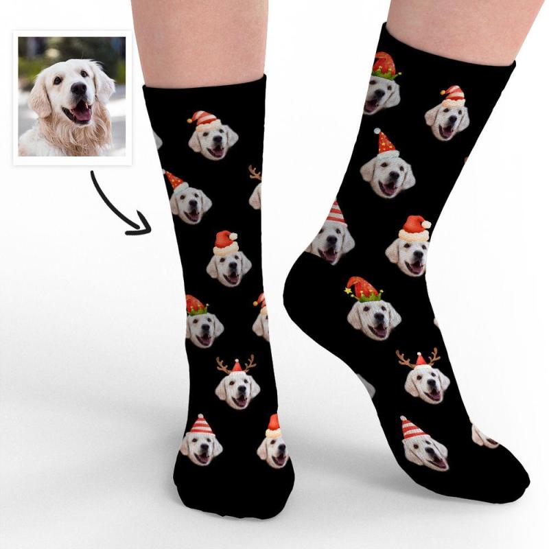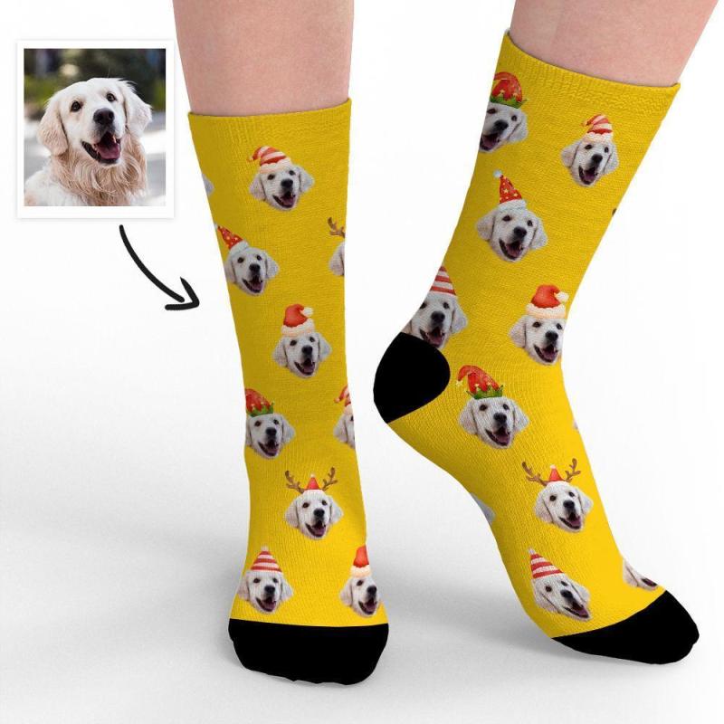 Joyeux Noël Chaussettes Photo Personnalisées Chaussettes De Visage Cadeaux De Conception drôle Pour Animal De Compagnie Mignon De Noël