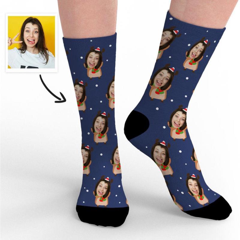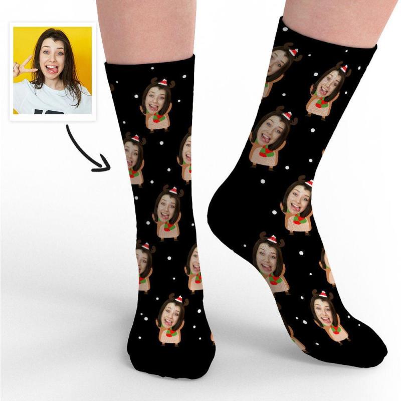 Joyeux No?l Photo Chaussettes Chaussettes Visage Mignon Elk Memorial Cadeaux Pour No?l