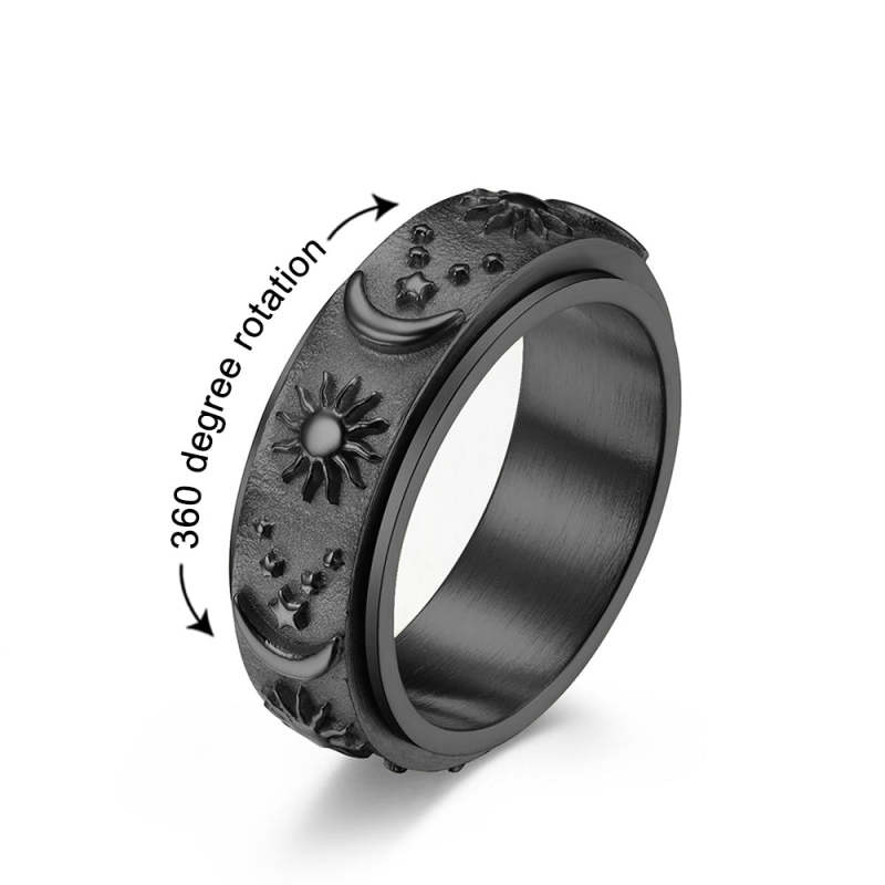 Cette bague tournante étoile de lune et soleil peut vous aider à soulager la tension ou l'anxiété. Il vous suffit de faire pivoter doucement l'anneau extérieur de cet anneau fidget, que ce soit avec une main ou les deux mains, ce groupe spinner vintage peut tourner très facilement.
