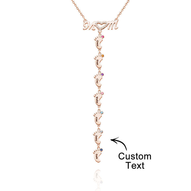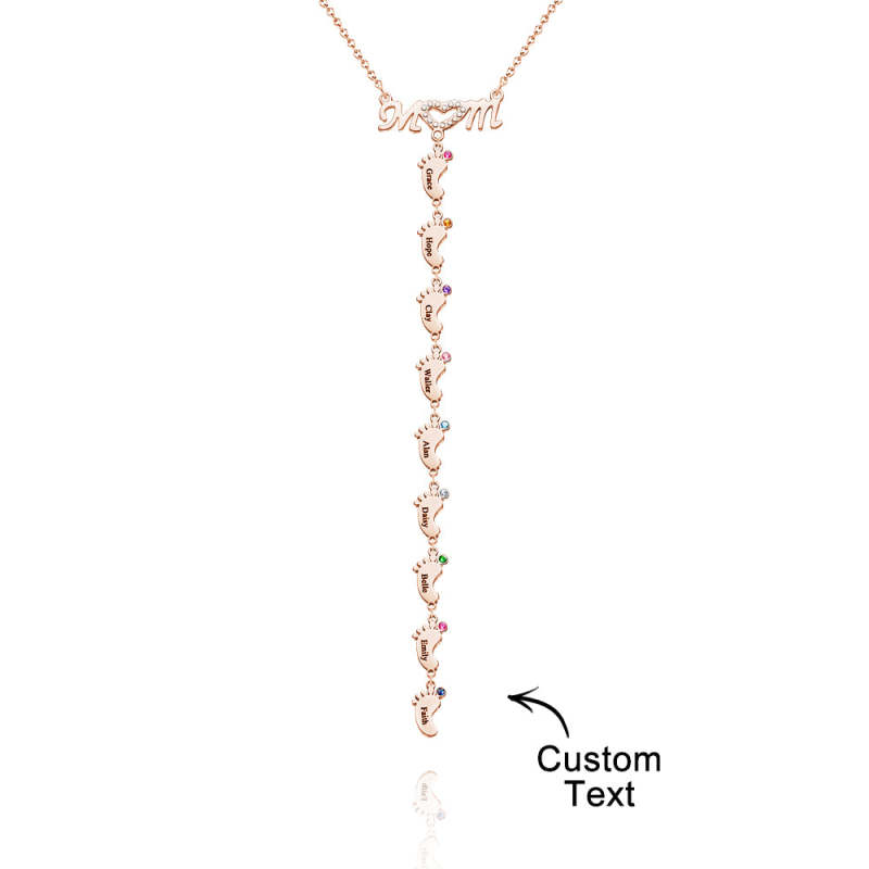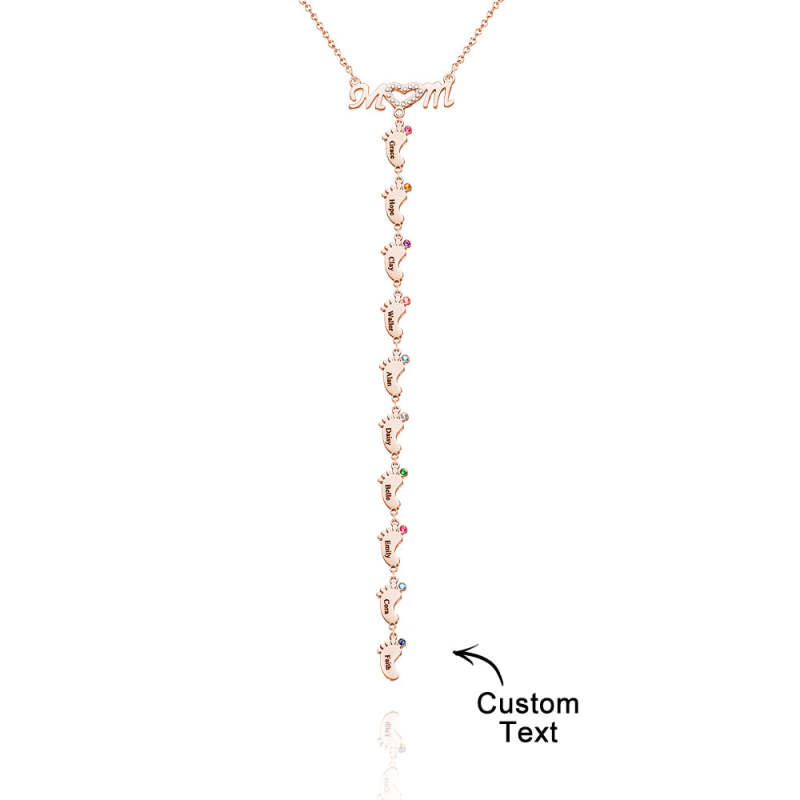 Collier Pour Mère Avec Petit Nom Personnalisé Et Breloques Avec Pierre De Naissance Pour Pied De Bébé