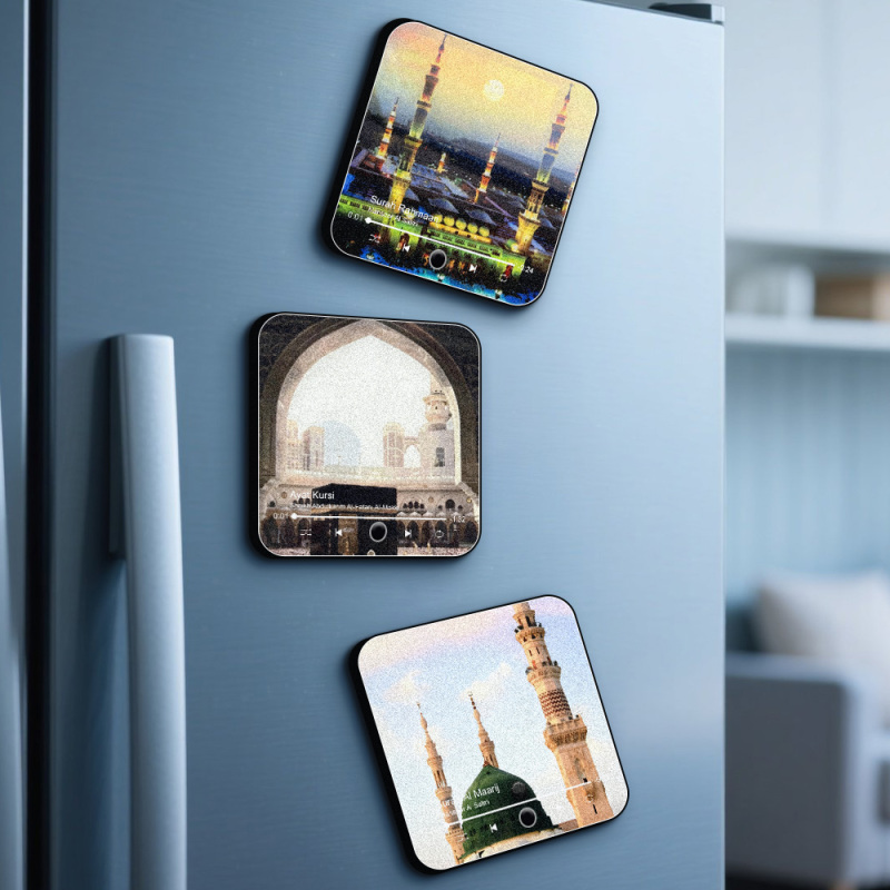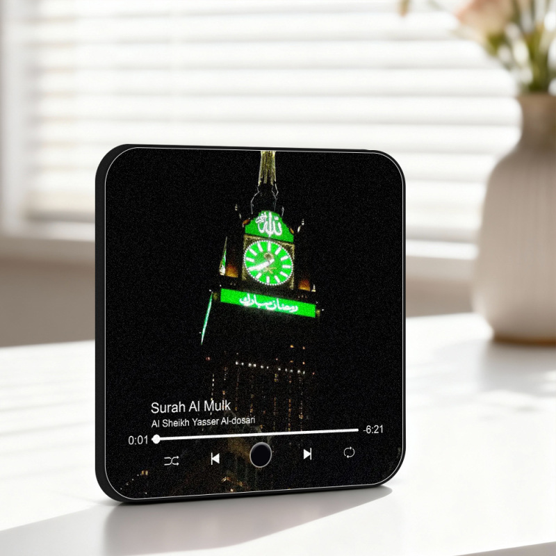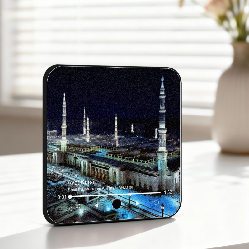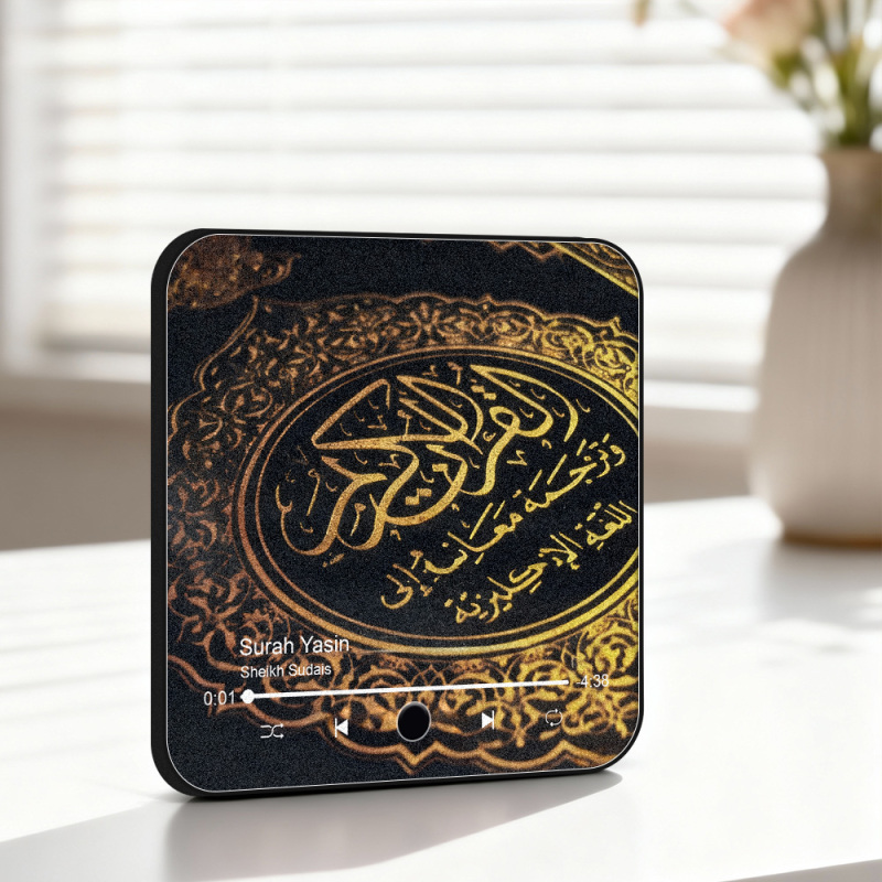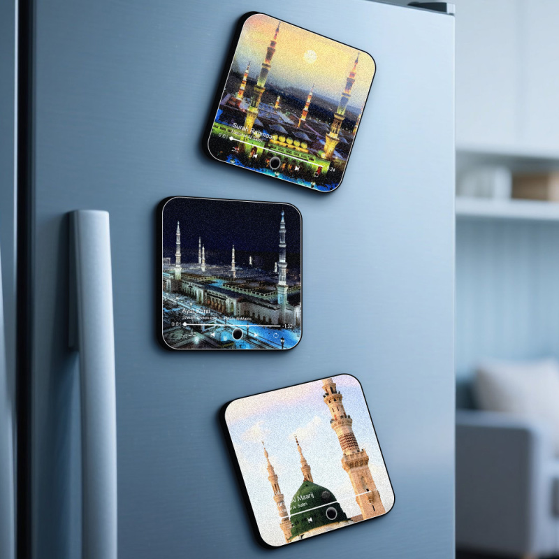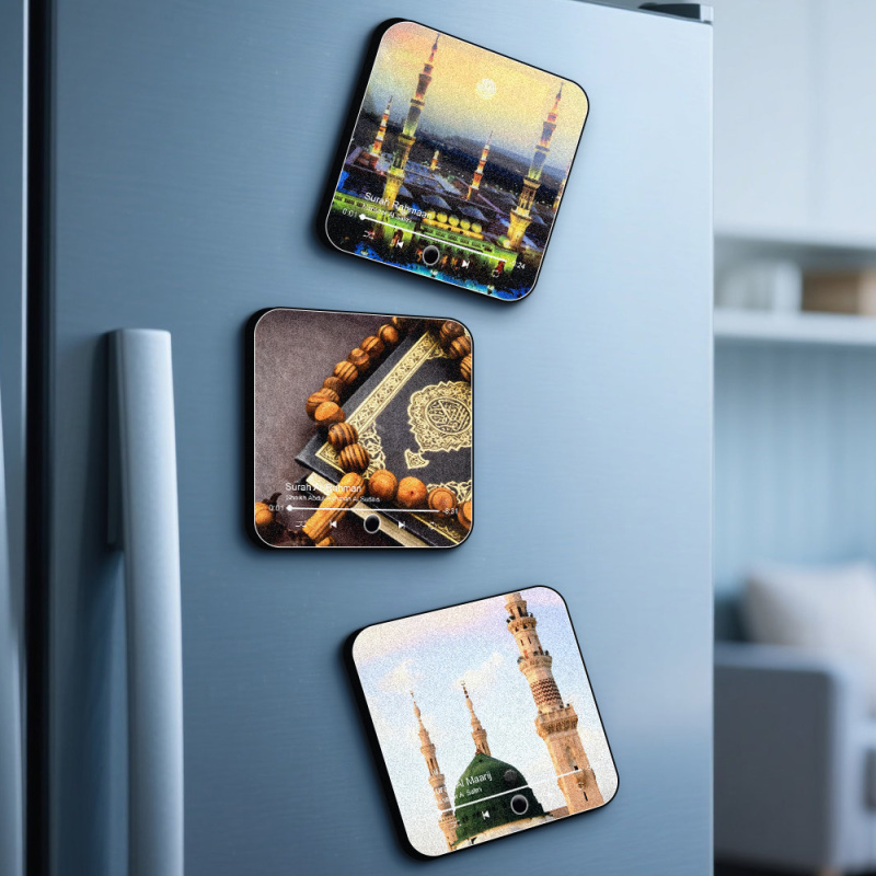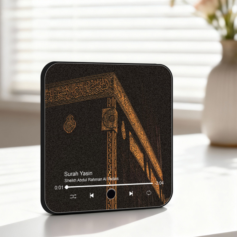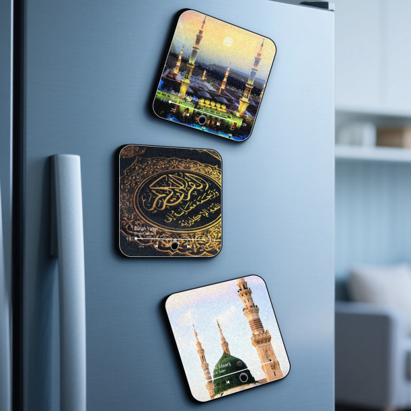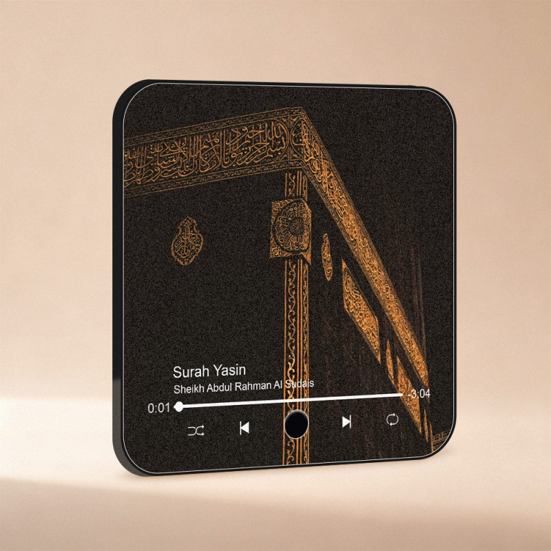 Imaginez une œuvre d'art raffinée qui embellit votre intérieur tout en enrichissant votre cheminement spirituel. Cet aimant de réfrigérateur innovant fait également office de lecteur de sourates, alliant avec élégance style et fonctionnalité. D'une simple pression sur un bouton, plongez-vous dans les récitations apaisantes du Coran et laissez la beauté et les bienfaits de la foi s'inviter dans votre quotidien. Conçu pour renforcer votre connexion spirituelle, ce produit unique est idéal pour quiconque souhaite intégrer la sagesse du Coran à sa routine quotidienne. Il est parfait pour les parents actifs et les personnes soucieuses de créer un environnement familial propice à la spiritualité. Il répond aux difficultés courantes d'intégrer des pratiques spirituelles significatives dans un quotidien trépidant, vous permettant ainsi de vivre votre foi plus facilement que jamais et de la partager avec vos proches. Que vous cuisiniez, étudiiez ou vous détendiez simplement, cet objet vous invite à faire une pause, à réfléchir et à vous connecter au divin. Parmi ses principales caractéristiques, on retrouve un lecteur de sourates intégré, préchargé avec une sélection de sourates, vous permettant d'écouter la parole d'Allah d'une simple pression sur un bouton. Cette fonctionnalité crée une atmosphère apaisante pour agrémenter votre quotidien et faciliter l'accès à des moments spirituels. Grâce à sa conception magnétique, elle se fixe sans effort sur n'importe quel réfrigérateur ou surface métallique, assurant ainsi une présence constante des rappels spirituels dans votre maison. Légère et portable, elle se glisse facilement dans n'importe quelle pièce ou sac de voyage, vous permettant d'emporter les versets sacrés du Coran partout avec vous. De plus, c'est un cadeau idéal pour des occasions comme le Ramadan, l'Aïd, les mariages ou les pendaisons de crémaillère, apportant joie et connexion spirituelle à vos proches. Sur le plan émotionnel, ce produit invite à une profonde paix intérieure et à la réflexion. Imaginez la chaleur qui vous envahit à l'écoute des récitations, créant un havre de sérénité chez vous. Il ne s'agit pas simplement d'un objet décoratif ; il s'agit d'inviter la gratitude, la pleine conscience et l'épanouissement spirituel au quotidien. Ce qui distingue ce produit des autres sur le marché, c'est son parfait équilibre entre élégance et profonde signification religieuse. Alors que de nombreux produits privilégient l'esthétique ou la fonctionnalité, celui-ci excelle dans les deux domaines. Il transforme les moments ordinaires en rencontres spirituelles, offrant une façon unique de vivre sa foi avec élégance. En l'intégrant à votre vie, vous n'adoptez pas seulement un objet ; vous saisissez l'opportunité d'approfondir votre cheminement spirituel et de créer des souvenirs inoubliables en famille. Embellissez votre foyer et votre esprit, et choisissez de donner une dimension spirituelle à votre quotidien.Dimensions : 10 x 10 x 1 cmMatière : Acrylique