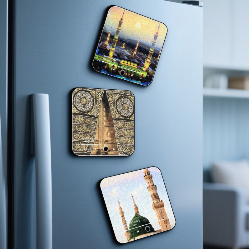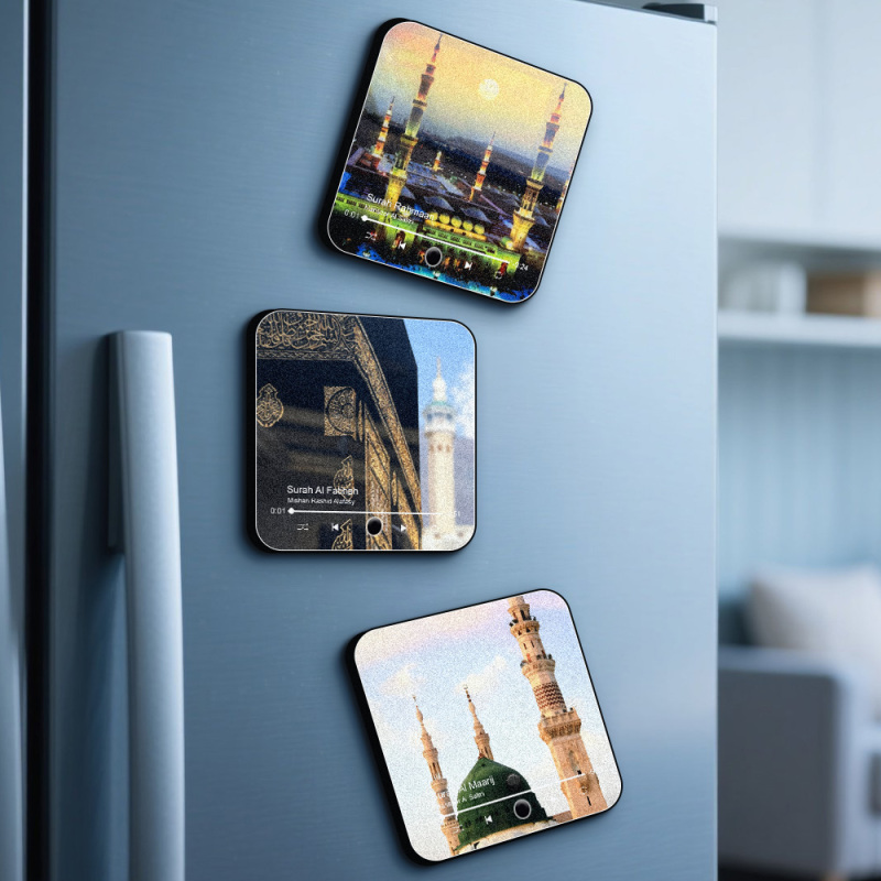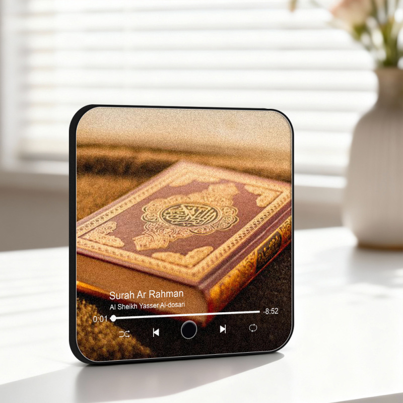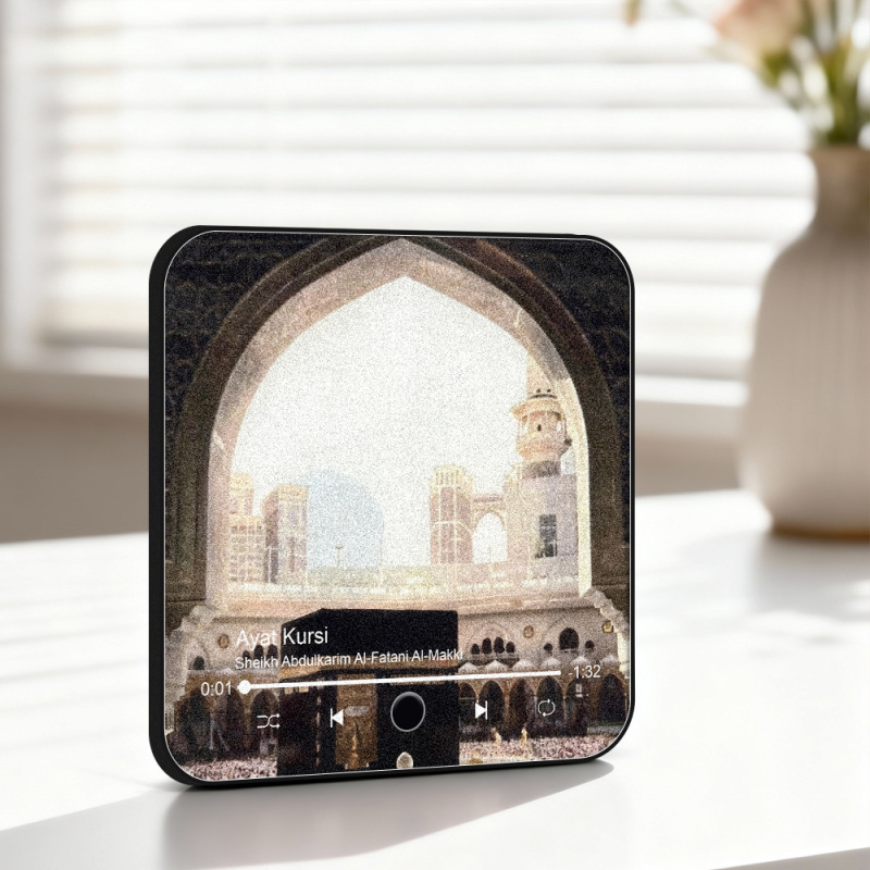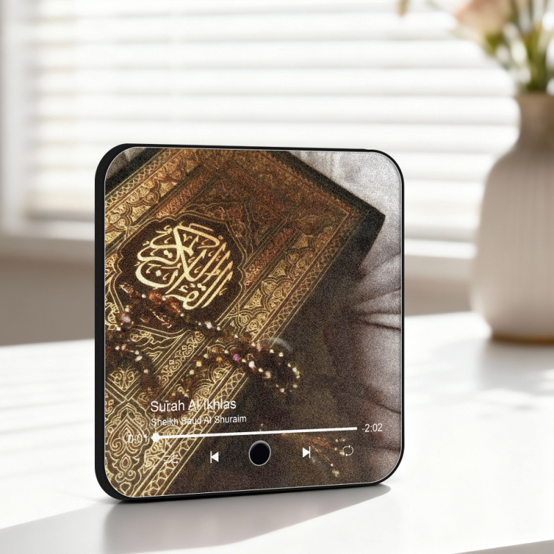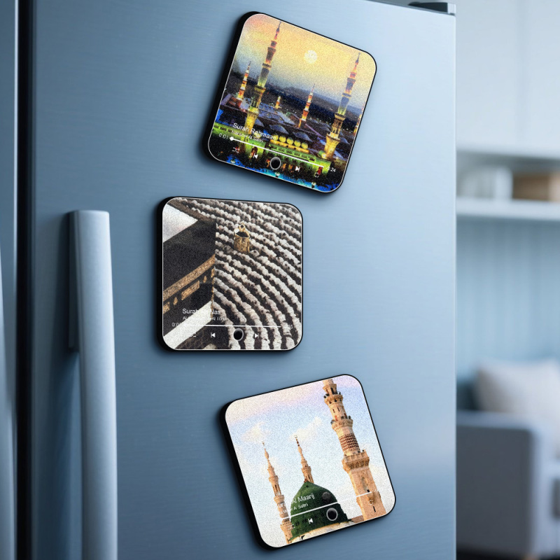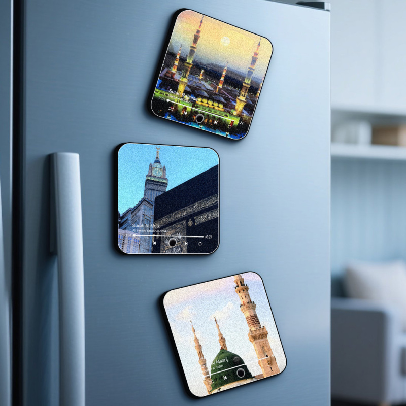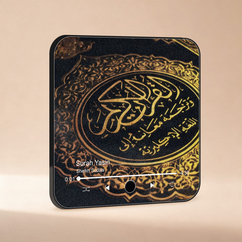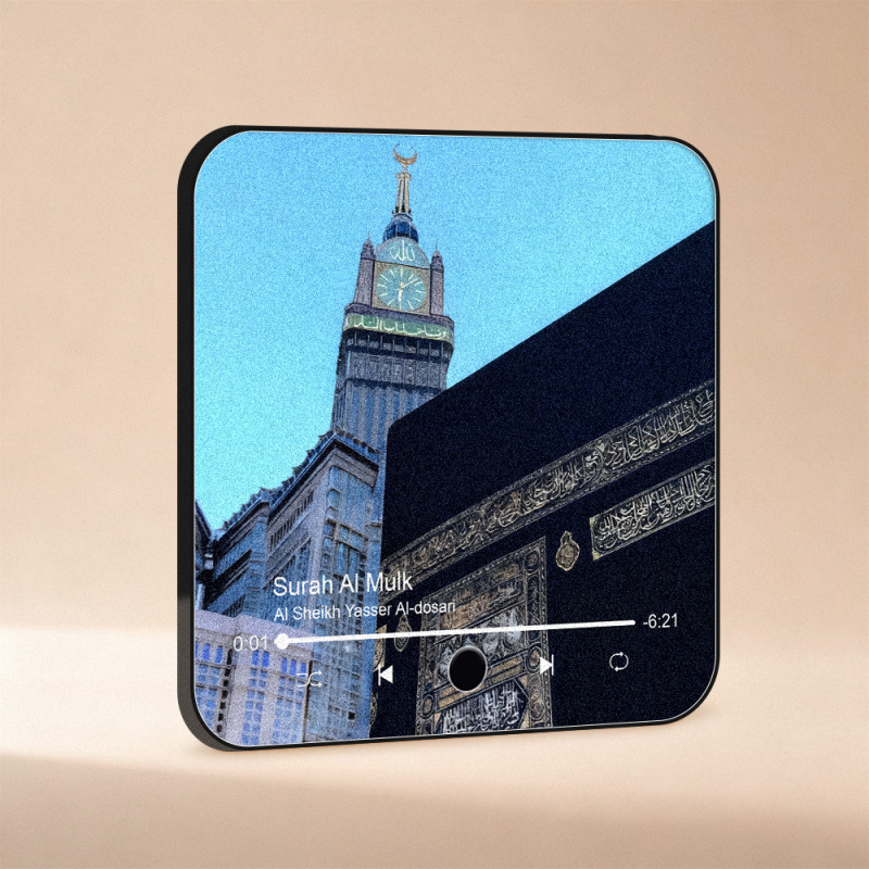 Imaginez une œuvre d'art raffinée qui embellit votre intérieur tout en enrichissant votre cheminement spirituel. Cet aimant de réfrigérateur innovant fait également office de lecteur de sourates, alliant avec élégance style et fonctionnalité. D'une simple pression sur un bouton, plongez-vous dans les récitations apaisantes du Coran et laissez la beauté et les bienfaits de la foi s'inviter dans votre quotidien. Conçu pour renforcer votre connexion spirituelle, ce produit unique est idéal pour quiconque souhaite intégrer la sagesse du Coran à sa routine quotidienne. Il est parfait pour les parents actifs et les personnes soucieuses de créer un environnement familial propice à la spiritualité. Il répond aux difficultés courantes d'intégrer des pratiques spirituelles significatives dans un quotidien trépidant, vous permettant ainsi de vivre votre foi plus facilement que jamais et de la partager avec vos proches. Que vous cuisiniez, étudiiez ou vous détendiez simplement, cet objet vous invite à faire une pause, à réfléchir et à vous connecter au divin. Parmi ses principales caractéristiques, on retrouve un lecteur de sourates intégré, préchargé avec une sélection de sourates, vous permettant d'écouter la parole d'Allah d'une simple pression sur un bouton. Cette fonctionnalité crée une atmosphère apaisante pour agrémenter votre quotidien et faciliter l'accès à des moments spirituels. Grâce à sa conception magnétique, elle se fixe sans effort sur n'importe quel réfrigérateur ou surface métallique, assurant ainsi une présence constante des rappels spirituels dans votre maison. Légère et portable, elle se glisse facilement dans n'importe quelle pièce ou sac de voyage, vous permettant d'emporter les versets sacrés du Coran partout avec vous. De plus, c'est un cadeau idéal pour des occasions comme le Ramadan, l'Aïd, les mariages ou les pendaisons de crémaillère, apportant joie et connexion spirituelle à vos proches. Sur le plan émotionnel, ce produit invite à une profonde paix intérieure et à la réflexion. Imaginez la chaleur qui vous envahit à l'écoute des récitations, créant un havre de sérénité chez vous. Il ne s'agit pas simplement d'un objet décoratif ; il s'agit d'inviter la gratitude, la pleine conscience et l'épanouissement spirituel au quotidien. Ce qui distingue ce produit des autres sur le marché, c'est son parfait équilibre entre élégance et profonde signification religieuse. Alors que de nombreux produits privilégient l'esthétique ou la fonctionnalité, celui-ci excelle dans les deux domaines. Il transforme les moments ordinaires en rencontres spirituelles, offrant une façon unique de vivre sa foi avec élégance. En l'intégrant à votre vie, vous n'adoptez pas seulement un objet ; vous saisissez l'opportunité d'approfondir votre cheminement spirituel et de créer des souvenirs inoubliables en famille. Embellissez votre foyer et votre esprit, et choisissez de donner une dimension spirituelle à votre quotidien.Dimensions : 10 x 10 x 1 cmMatière : Acrylique