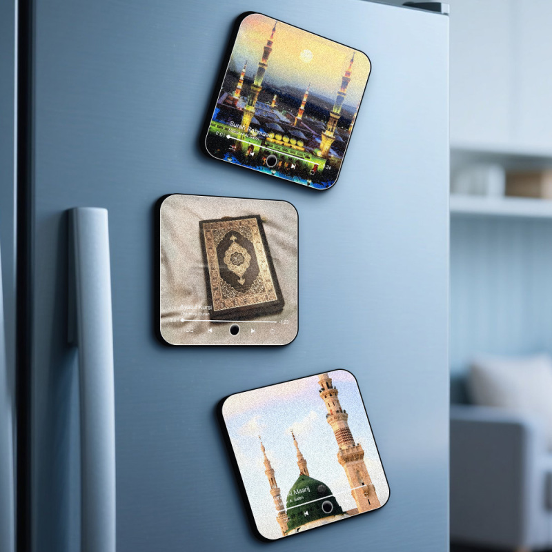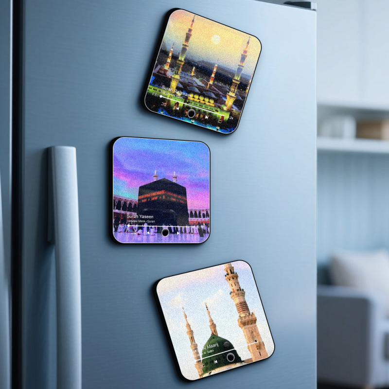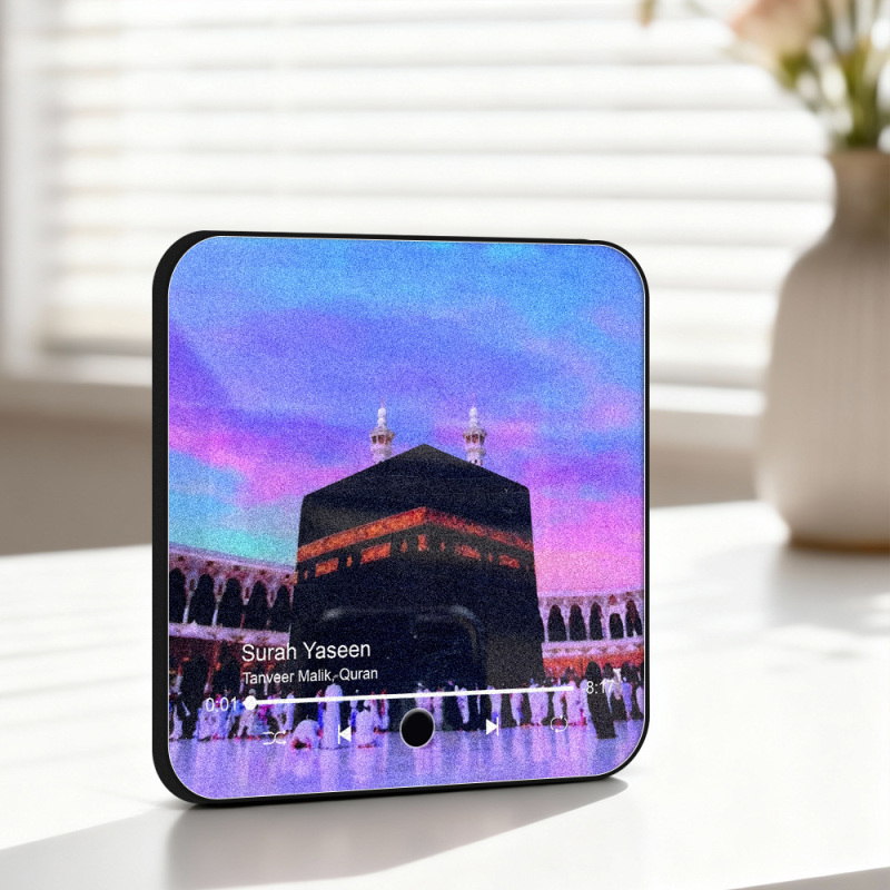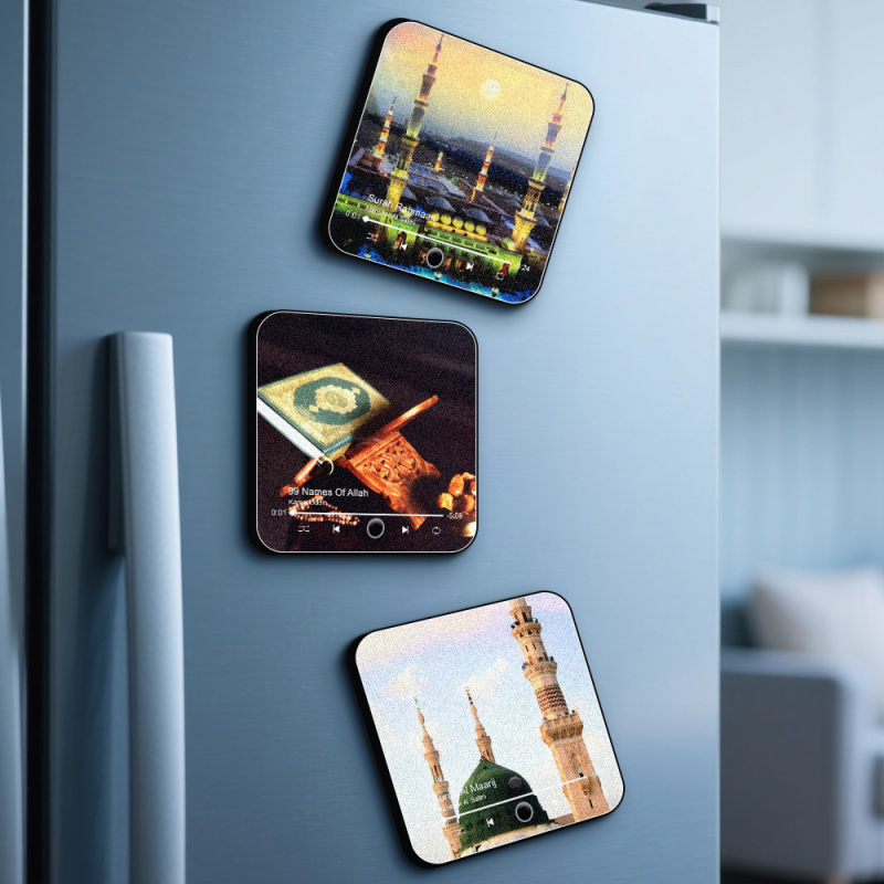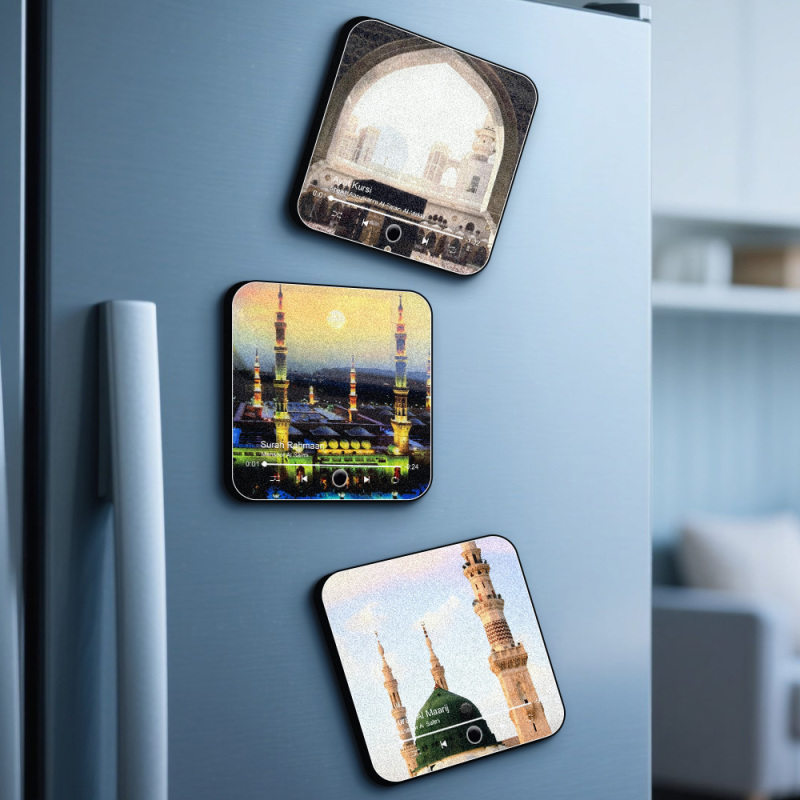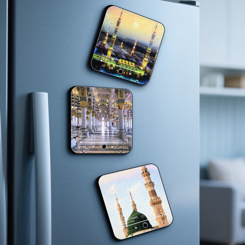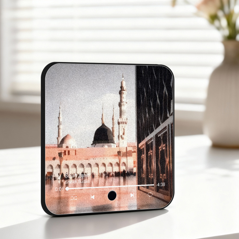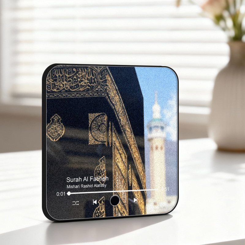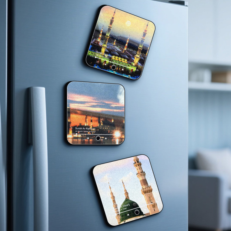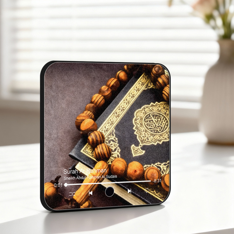 Imaginez une œuvre d'art raffinée qui embellit votre intérieur tout en enrichissant votre cheminement spirituel. Cet aimant de réfrigérateur innovant fait également office de lecteur de sourates, alliant avec élégance style et fonctionnalité. D'une simple pression sur un bouton, plongez-vous dans les récitations apaisantes du Coran et laissez la beauté et les bienfaits de la foi s'inviter dans votre quotidien. Conçu pour renforcer votre connexion spirituelle, ce produit unique est idéal pour quiconque souhaite intégrer la sagesse du Coran à sa routine quotidienne. Il est parfait pour les parents actifs et les personnes soucieuses de créer un environnement familial propice à la spiritualité. Il répond aux difficultés courantes d'intégrer des pratiques spirituelles significatives dans un quotidien trépidant, vous permettant ainsi de vivre votre foi plus facilement que jamais et de la partager avec vos proches. Que vous cuisiniez, étudiiez ou vous détendiez simplement, cet objet vous invite à faire une pause, à réfléchir et à vous connecter au divin. Parmi ses principales caractéristiques, on retrouve un lecteur de sourates intégré, préchargé avec une sélection de sourates, vous permettant d'écouter la parole d'Allah d'une simple pression sur un bouton. Cette fonctionnalité crée une atmosphère apaisante pour agrémenter votre quotidien et faciliter l'accès à des moments spirituels. Grâce à sa conception magnétique, elle se fixe sans effort sur n'importe quel réfrigérateur ou surface métallique, assurant ainsi une présence constante des rappels spirituels dans votre maison. Légère et portable, elle se glisse facilement dans n'importe quelle pièce ou sac de voyage, vous permettant d'emporter les versets sacrés du Coran partout avec vous. De plus, c'est un cadeau idéal pour des occasions comme le Ramadan, l'Aïd, les mariages ou les pendaisons de crémaillère, apportant joie et connexion spirituelle à vos proches. Sur le plan émotionnel, ce produit invite à une profonde paix intérieure et à la réflexion. Imaginez la chaleur qui vous envahit à l'écoute des récitations, créant un havre de sérénité chez vous. Il ne s'agit pas simplement d'un objet décoratif ; il s'agit d'inviter la gratitude, la pleine conscience et l'épanouissement spirituel au quotidien. Ce qui distingue ce produit des autres sur le marché, c'est son parfait équilibre entre élégance et profonde signification religieuse. Alors que de nombreux produits privilégient l'esthétique ou la fonctionnalité, celui-ci excelle dans les deux domaines. Il transforme les moments ordinaires en rencontres spirituelles, offrant une façon unique de vivre sa foi avec élégance. En l'intégrant à votre vie, vous n'adoptez pas seulement un objet ; vous saisissez l'opportunité d'approfondir votre cheminement spirituel et de créer des souvenirs inoubliables en famille. Embellissez votre foyer et votre esprit, et choisissez de donner une dimension spirituelle à votre quotidien.Dimensions : 10 x 10 x 1 cmMatière : Acrylique