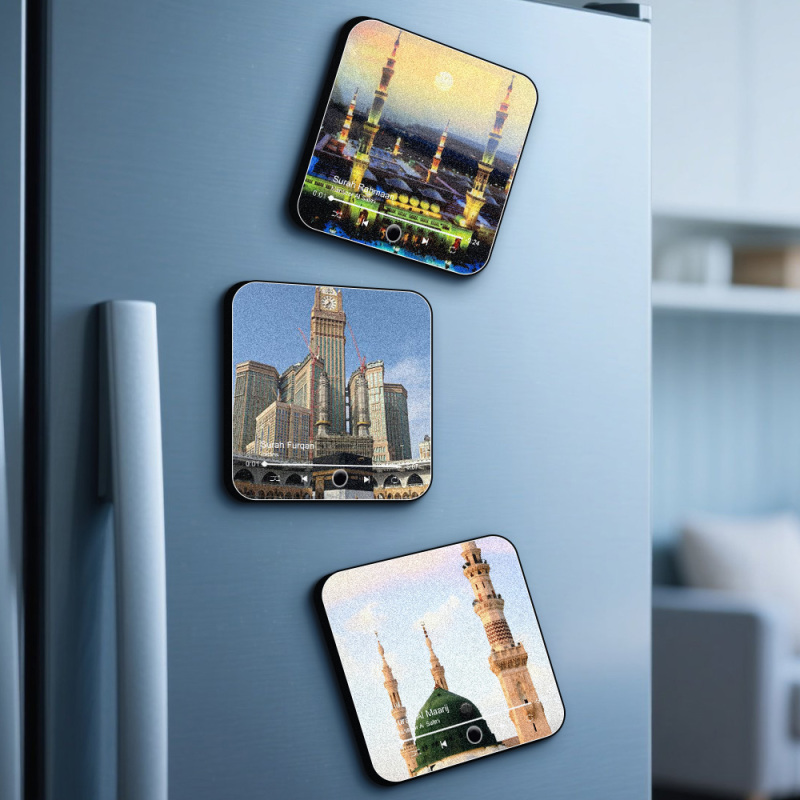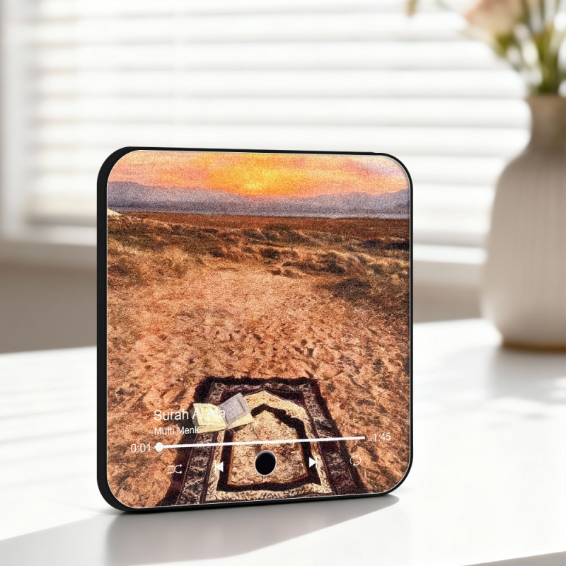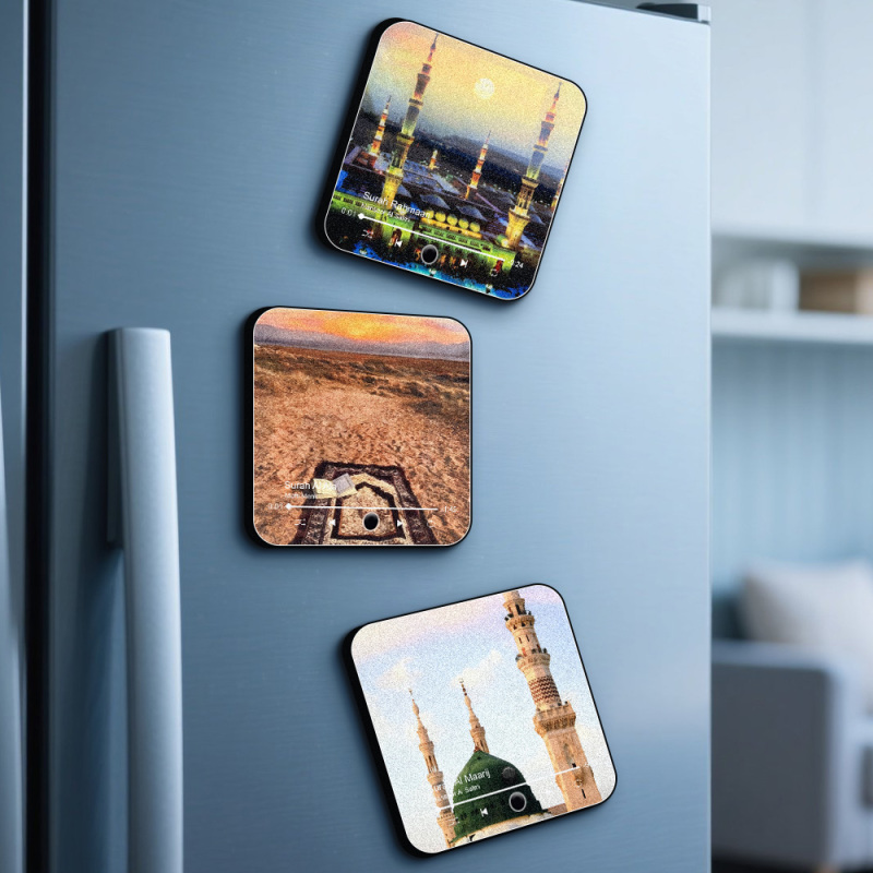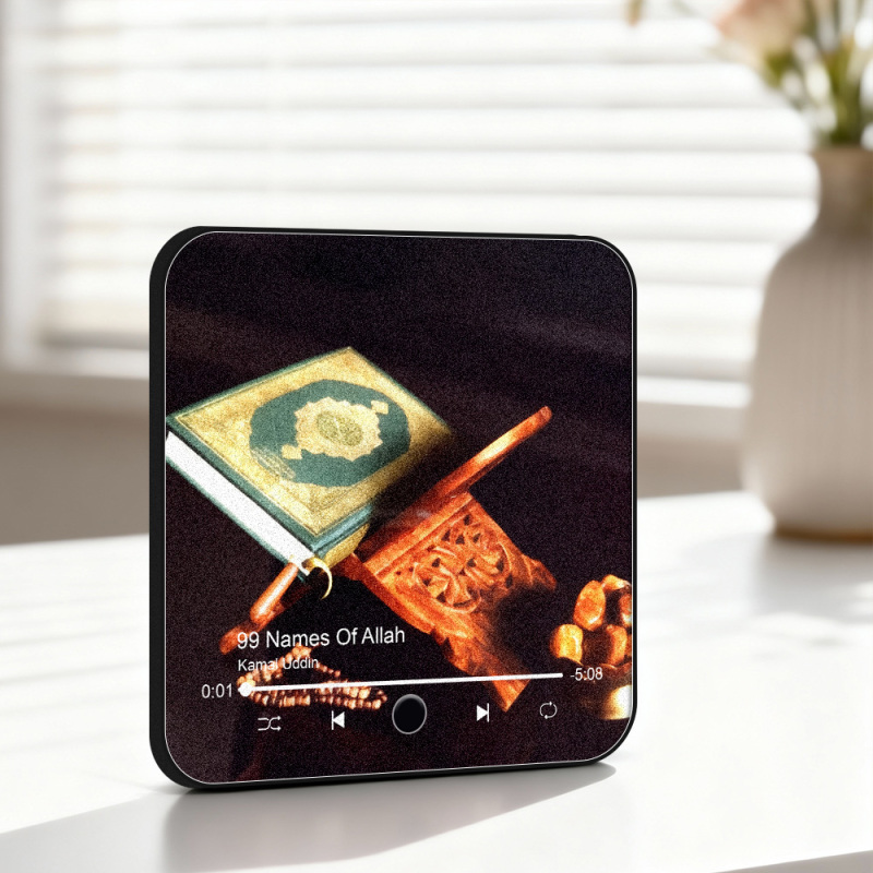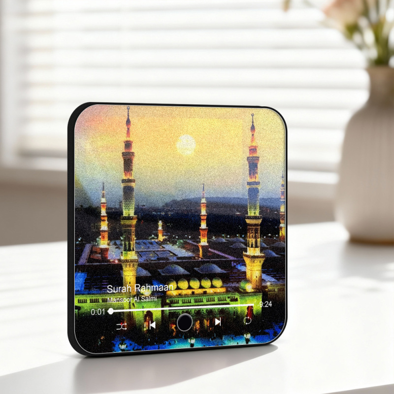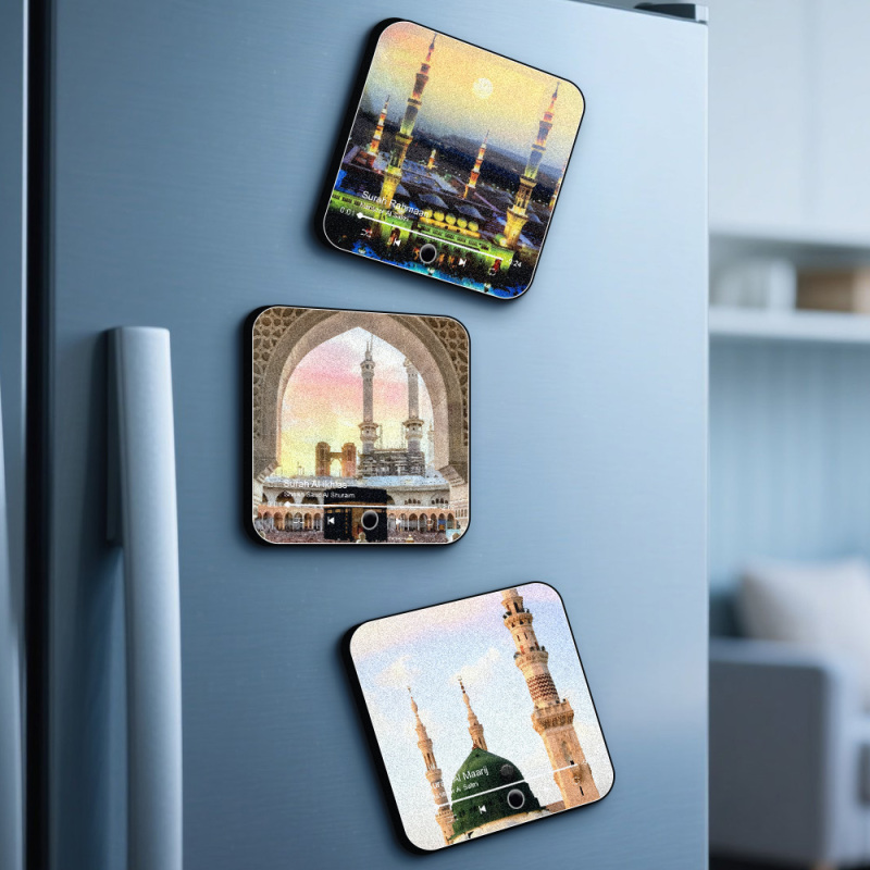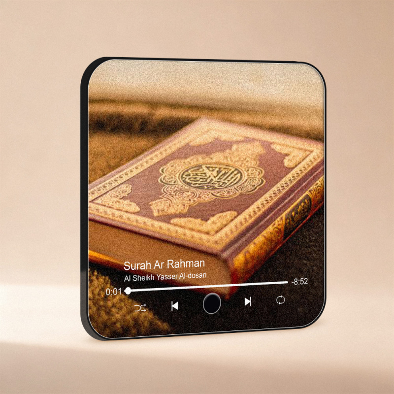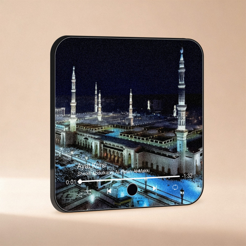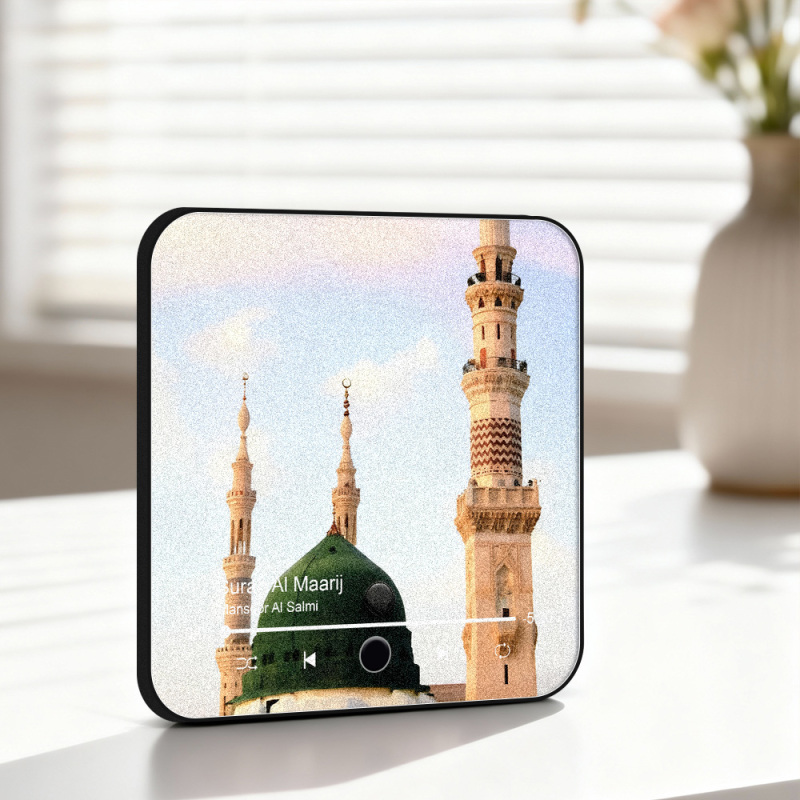 Imaginez une œuvre d'art raffinée qui embellit votre intérieur tout en enrichissant votre cheminement spirituel. Cet aimant de réfrigérateur innovant fait également office de lecteur de sourates, alliant avec élégance style et fonctionnalité. D'une simple pression sur un bouton, plongez-vous dans les récitations apaisantes du Coran et laissez la beauté et les bienfaits de la foi s'inviter dans votre quotidien. Conçu pour renforcer votre connexion spirituelle, ce produit unique est idéal pour quiconque souhaite intégrer la sagesse du Coran à sa routine quotidienne. Il est parfait pour les parents actifs et les personnes soucieuses de créer un environnement familial propice à la spiritualité. Il répond aux difficultés courantes d'intégrer des pratiques spirituelles significatives dans un quotidien trépidant, vous permettant ainsi de vivre votre foi plus facilement que jamais et de la partager avec vos proches. Que vous cuisiniez, étudiiez ou vous détendiez simplement, cet objet vous invite à faire une pause, à réfléchir et à vous connecter au divin. Parmi ses principales caractéristiques, on retrouve un lecteur de sourates intégré, préchargé avec une sélection de sourates, vous permettant d'écouter la parole d'Allah d'une simple pression sur un bouton. Cette fonctionnalité crée une atmosphère apaisante pour agrémenter votre quotidien et faciliter l'accès à des moments spirituels. Grâce à sa conception magnétique, elle se fixe sans effort sur n'importe quel réfrigérateur ou surface métallique, assurant ainsi une présence constante des rappels spirituels dans votre maison. Légère et portable, elle se glisse facilement dans n'importe quelle pièce ou sac de voyage, vous permettant d'emporter les versets sacrés du Coran partout avec vous. De plus, c'est un cadeau idéal pour des occasions comme le Ramadan, l'Aïd, les mariages ou les pendaisons de crémaillère, apportant joie et connexion spirituelle à vos proches. Sur le plan émotionnel, ce produit invite à une profonde paix intérieure et à la réflexion. Imaginez la chaleur qui vous envahit à l'écoute des récitations, créant un havre de sérénité chez vous. Il ne s'agit pas simplement d'un objet décoratif ; il s'agit d'inviter la gratitude, la pleine conscience et l'épanouissement spirituel au quotidien. Ce qui distingue ce produit des autres sur le marché, c'est son parfait équilibre entre élégance et profonde signification religieuse. Alors que de nombreux produits privilégient l'esthétique ou la fonctionnalité, celui-ci excelle dans les deux domaines. Il transforme les moments ordinaires en rencontres spirituelles, offrant une façon unique de vivre sa foi avec élégance. En l'intégrant à votre vie, vous n'adoptez pas seulement un objet ; vous saisissez l'opportunité d'approfondir votre cheminement spirituel et de créer des souvenirs inoubliables en famille. Embellissez votre foyer et votre esprit, et choisissez de donner une dimension spirituelle à votre quotidien.Dimensions : 10 x 10 x 1 cmMatière : Acrylique
