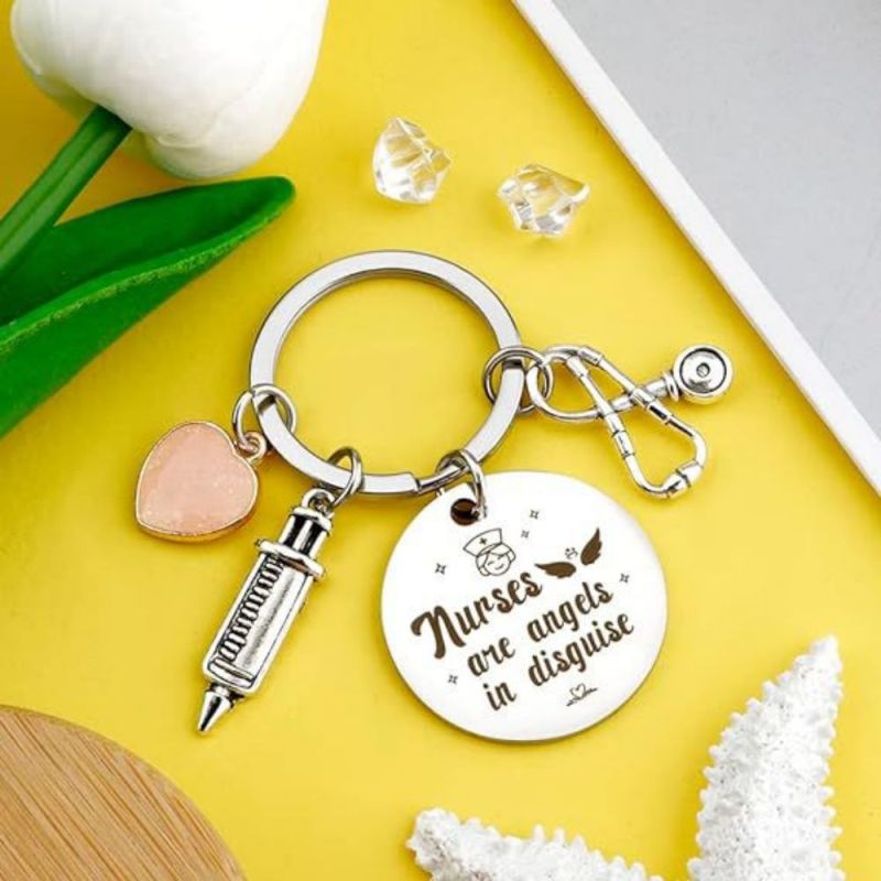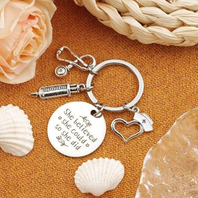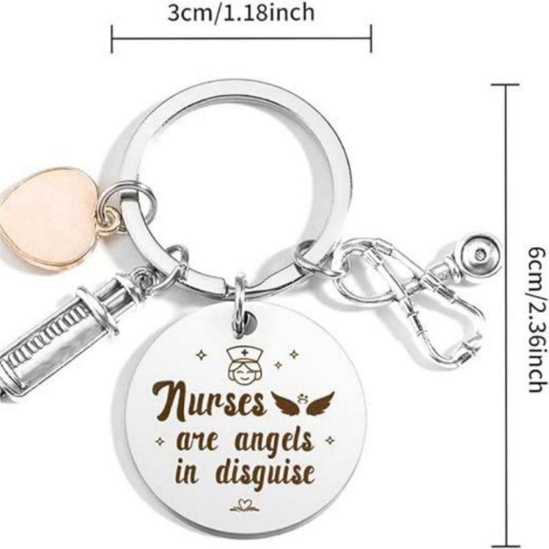 Soyez fier de votre travail, de qui vous êtes et de l'impact que vous avez. Le porte-clés Nurse présente un design de stéthoscope et de tube d’aiguille, parfait pour montrer votre appréciation aux infirmières. Il peut être utilisé comme accessoire élégant sur des clés, des sacs ou des téléphones. Ce porte-clés en acier inoxydable constitue un cadeau attentionné pour les infirmières et les professionnels de la santé, adapté à diverses occasions. Son matériau durable garantit une couleur durable et aucune réaction allergique. Idéal pour les anniversaires, les vacances ou comme signe d'appréciation.