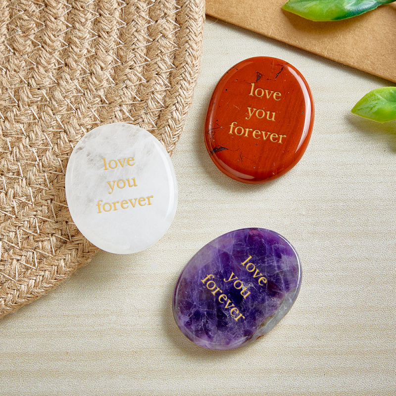 Disponible dans une variété de pierres naturelles telles que le quartz clair, le quartz rose, l'améthyste, le jaspe rouge, l'obsidienne, l'œil de tigre, l'aventurine verte, la sodalite et l'agate indienne, chaque pierre révèle sa texture unique et sa beauté naturelle.