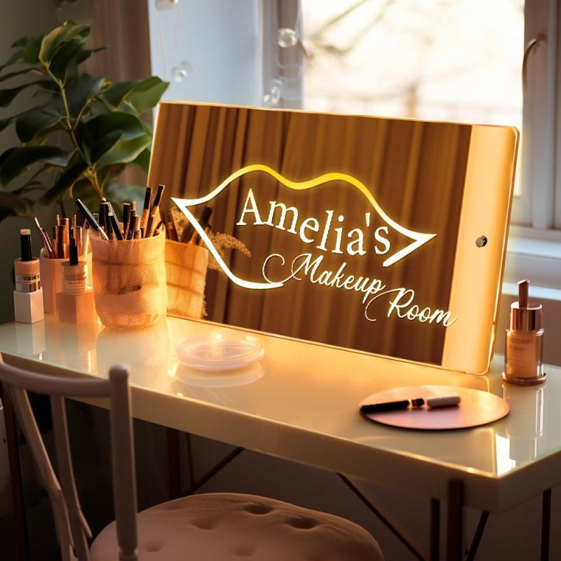 Panneau Miroir Avec Nom Personnalisé, éclairage LED Personnalisé Pour Salle De Maquillage, Cadeau Pour Filles