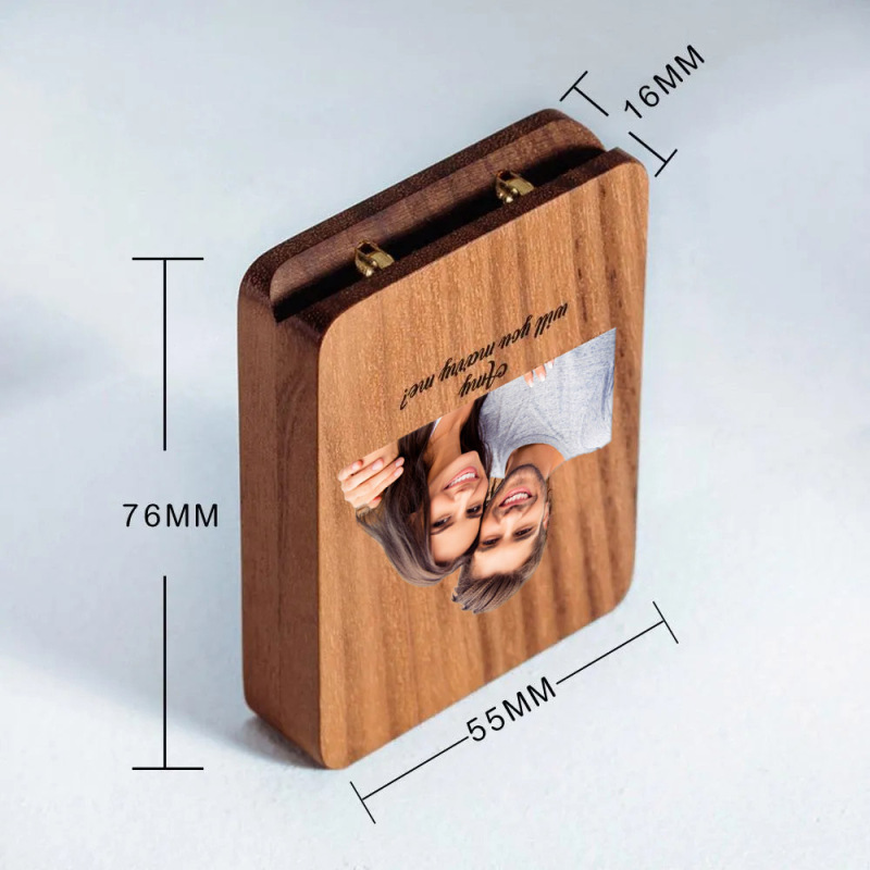 Boîte à bagues personnalisée Boîte à bagues de fiançailles rotative fine Personnalisez le cadeau d'anniversaire de la boîte à bagues en bois Les boîtes à bagues traditionnelles sont plutôt évidentes, nous avons donc recréé la boîte à bagues pour mieux dissimuler votre bague. Cette boîte à bagues en bois est un cadeau naturel en bois naturel. Nous sélectionnons avec soin les meilleurs bois de noyer et d'érable pour la couleur et le grain, chacun est unique et chaque étui peut varier légèrement en couleur, ce qui ressemble à une œuvre d'art, qui vaut la peine d'être collectionnée toute une vie. Porte-bague rotatif élégant, la mousse interne douce maintient et protège la bague en toute sécurité. La boîte de fiançailles est faite pour durer toute une vie. Vous pouvez graver un message personnalisé et en faire un souvenir unique dans votre futur. C'est la boîte à bagues parfaite pour les propositions, les fiançailles et le stockage des bagues.