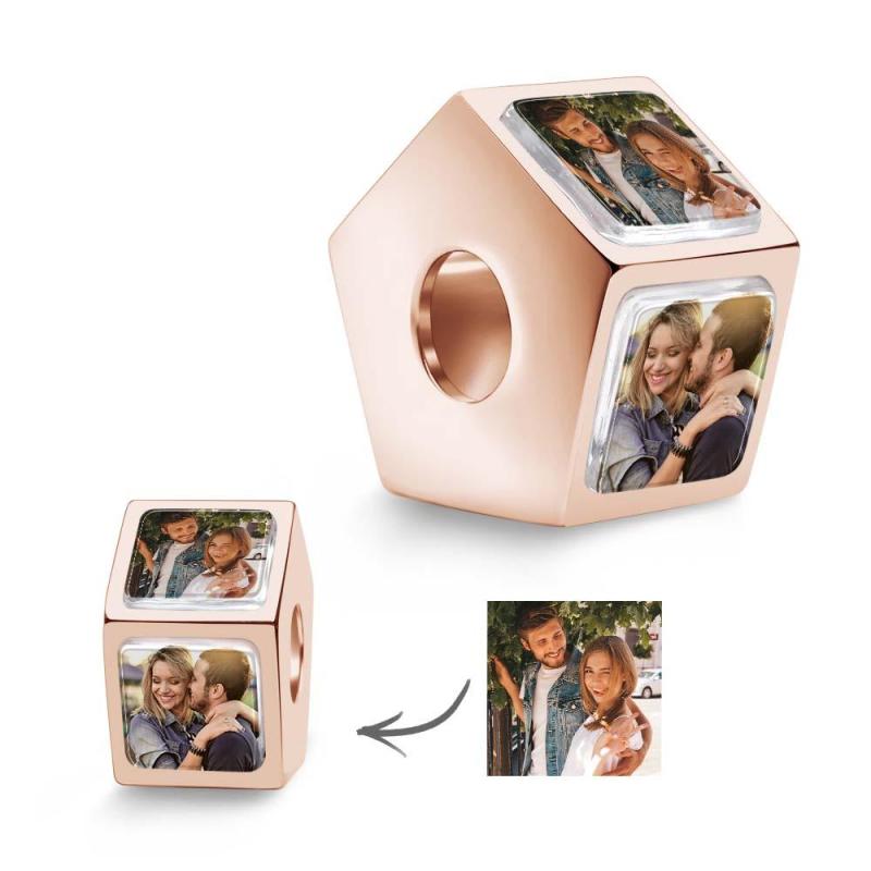 Perle De Charme Photo Personnalisée À 5 Côtés, Breloque Photo Personnalisée, Breloque Photo Personnalisée Pour Femmes
