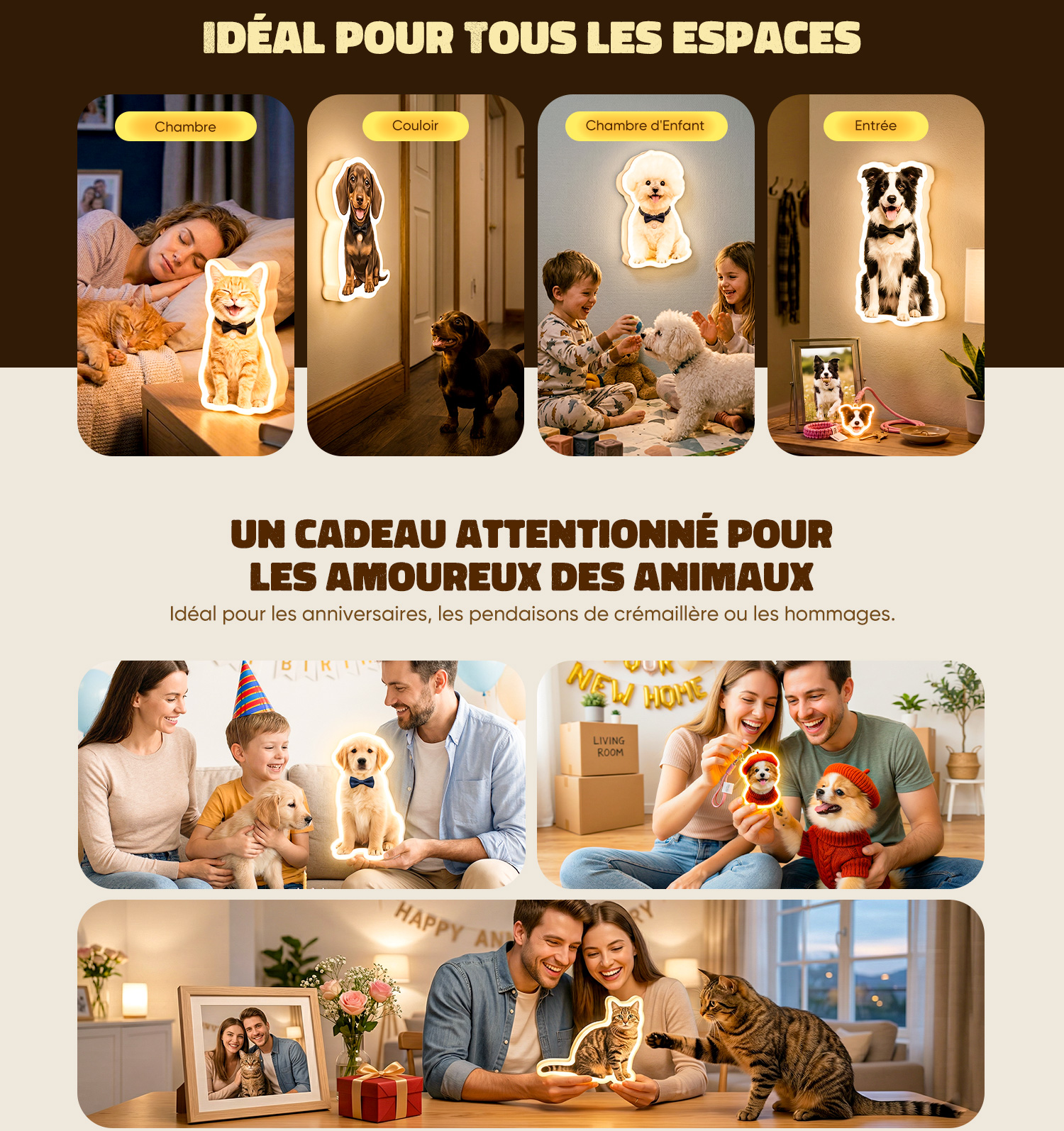 Illuminez votre espace avec une veilleuse conçue spécialement pour vous- et votre animal de compagnie.