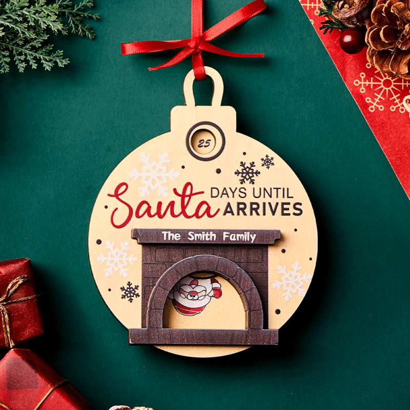 Suivez les jours jusqu'à Noël avec notre décoration de compte à rebours de Noël personnalisée ! Cet ornement présente un Père Noël festif dans un motif de cheminée et peut être personnalisé pour une touche spéciale. Gardez l'esprit des fêtes vivant pendant le compte à rebours jusqu'au jour de Noël avec cette décoration unique et charmante.