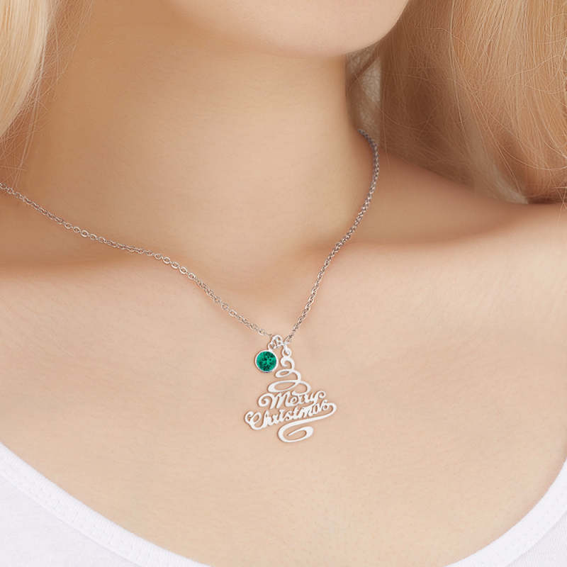 Conception d'arbre de Noël unique avec pierre de naissance en option. Un collier d'arbre de Noël mignon, délicat et délicat. Vous pouvez offrir comme cadeau de Noël à votre femme, petite amie, mère, amie ou à votre bien-aimé.