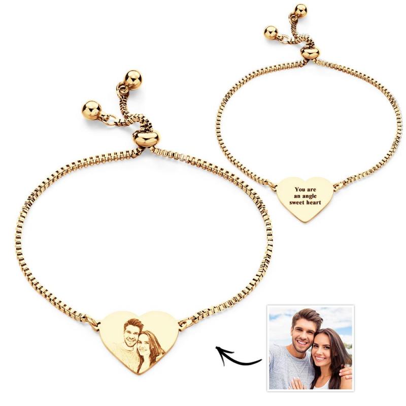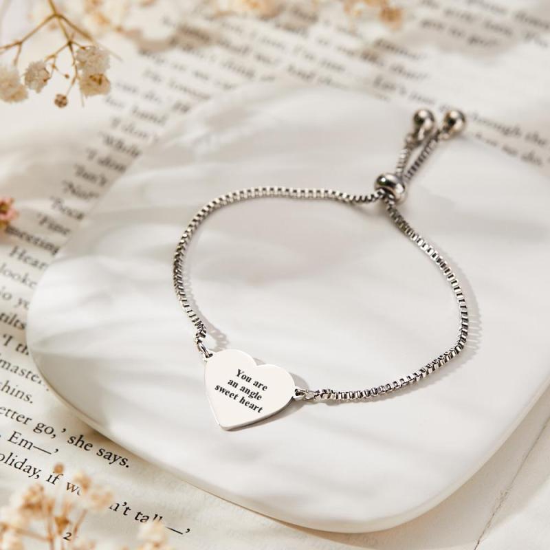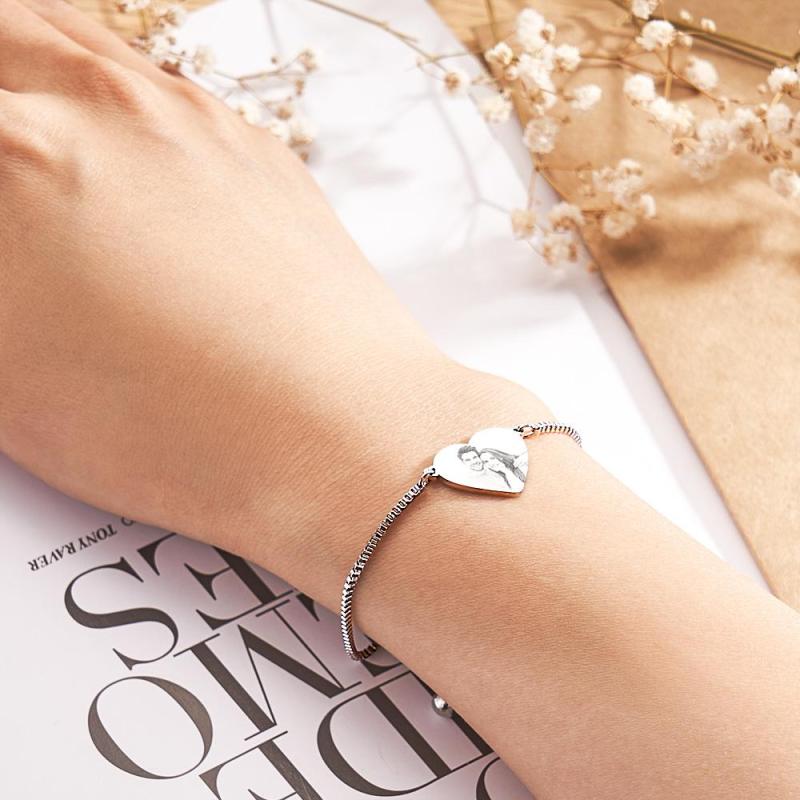 Bracelet Réglable En Acier Inoxydable Avec Texte Photo Personnalisé, Pendentif En Forme De Cœur Sculpté, Bijoux À La Mode, Cadeau Personnalisé Pour Femmes