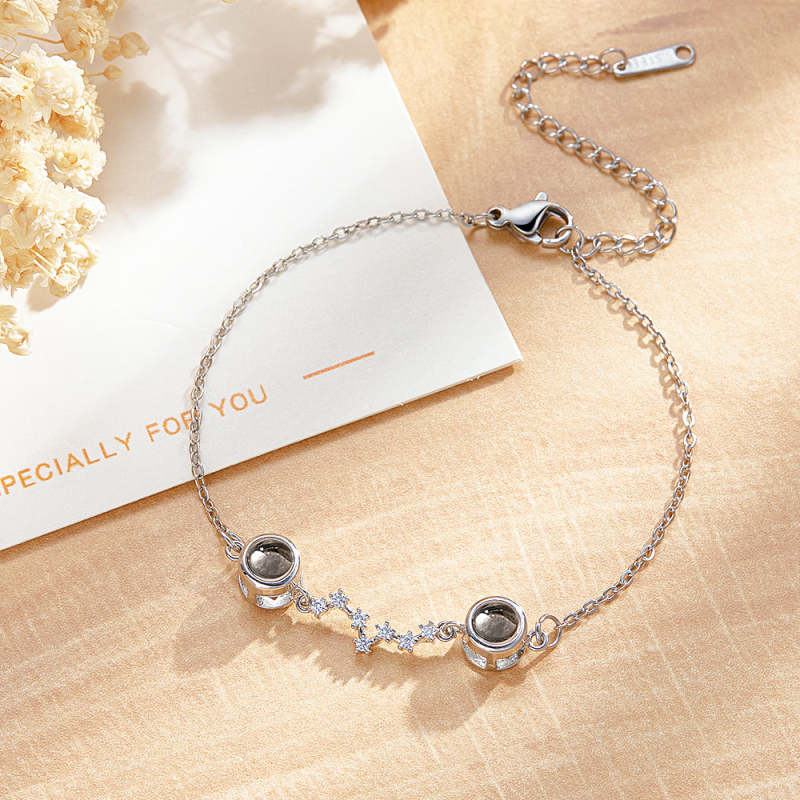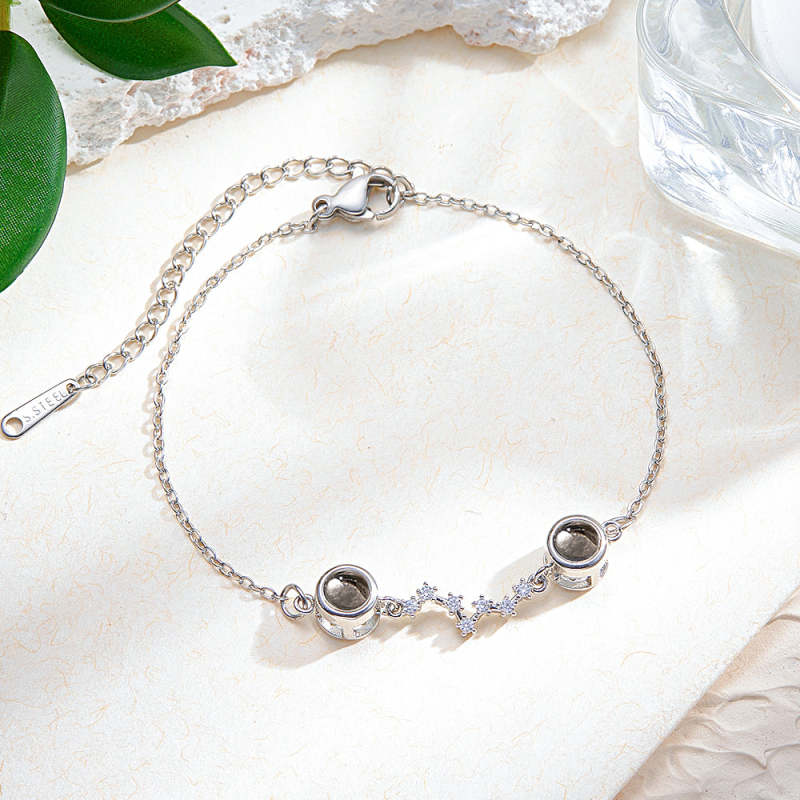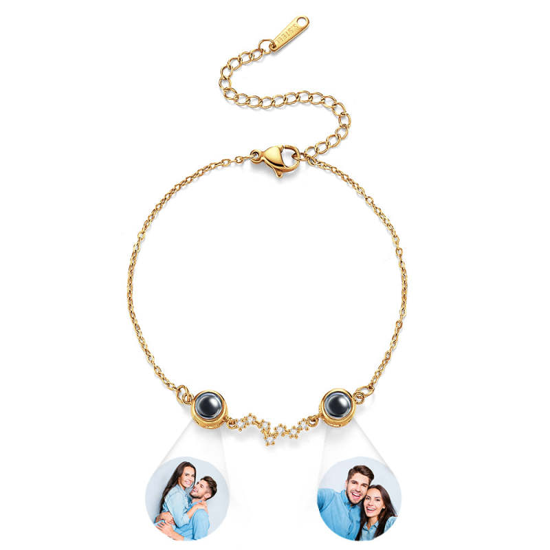 Bracelet Photo Personnalisé Double Projection Accompagné De Diamants