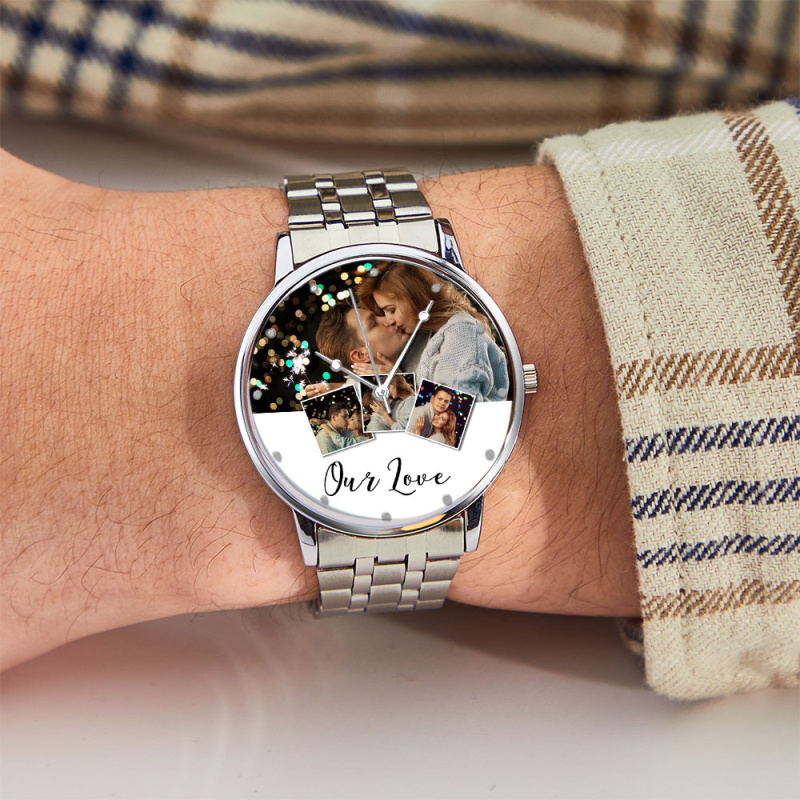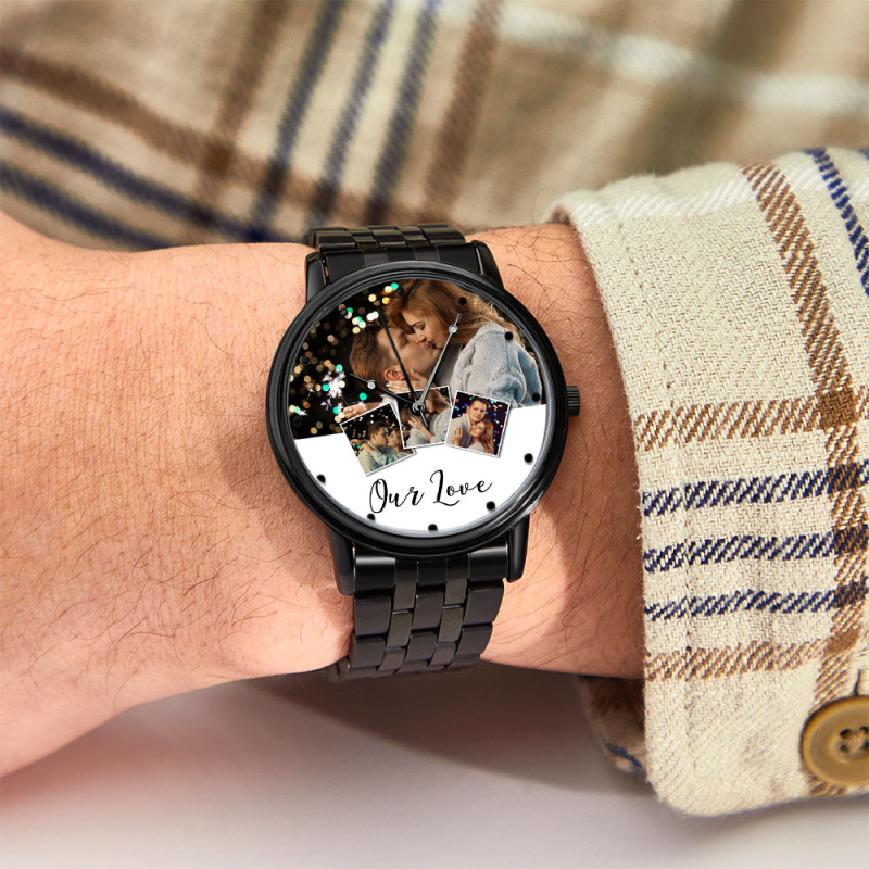 Montre Photo Gravée Personnalisée Pour Hommes, Bracelet En Alliage Noir, Montre Photo, Cadeaux De Saint-valentin Pour Petit Ami