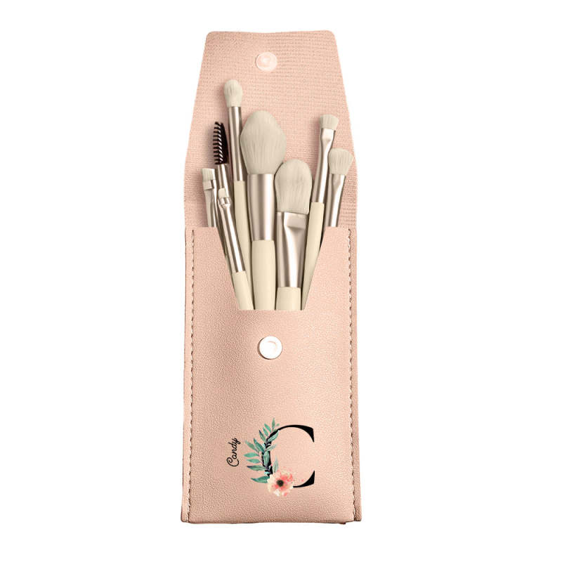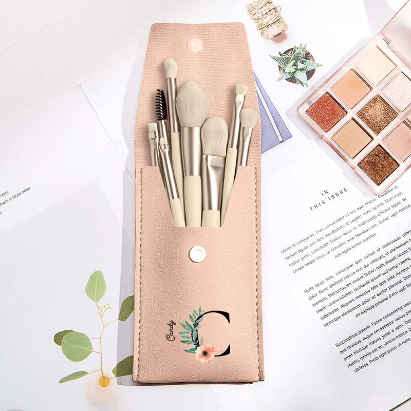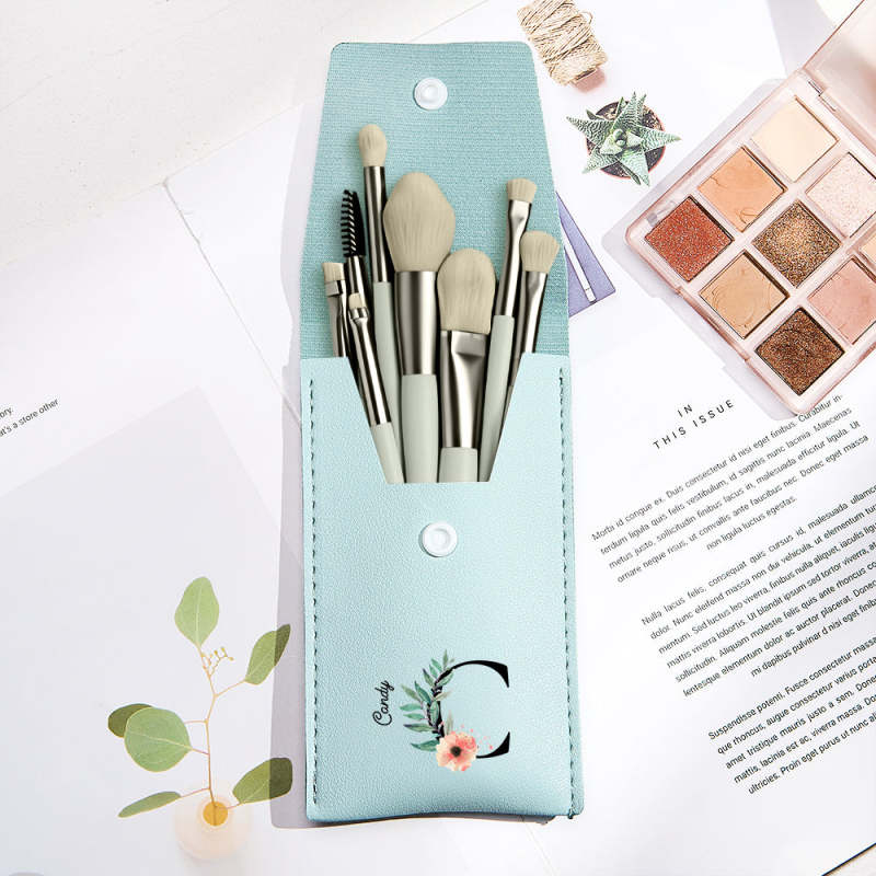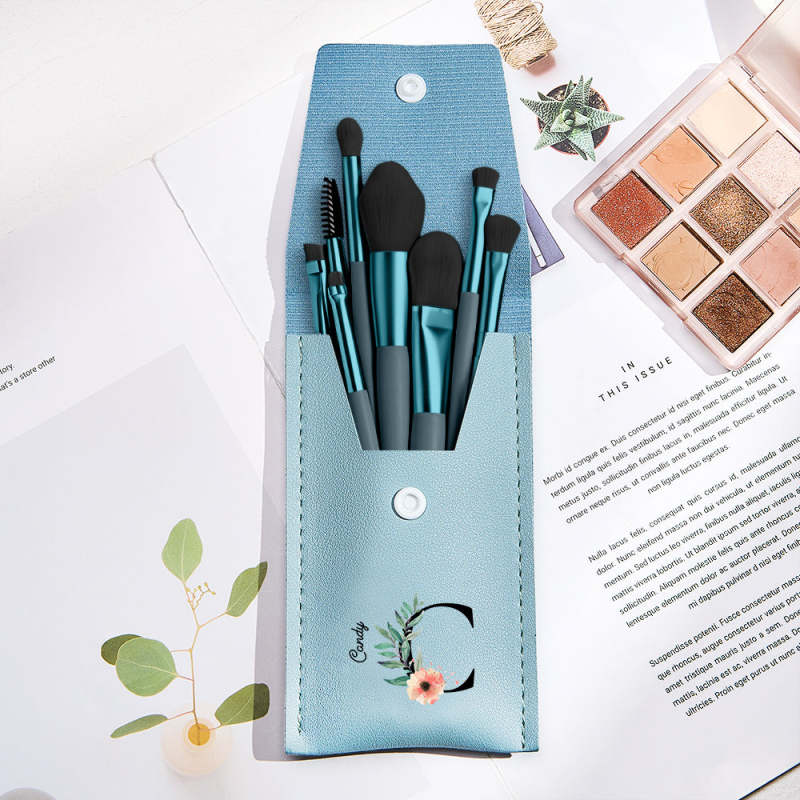 Sac De Pinceaux De Maquillage En Cuir À Fleurs Personnalisé Avec 8 Pinceaux De Maquillage, Cadeau Pour Elle