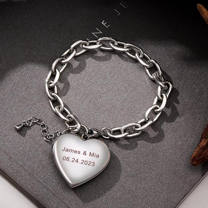 Bracelet Médaillon Personnalisé En Forme De Cœur, Vintage, À Maillons Réglables, Cadeaux Pour Hommes