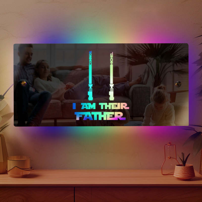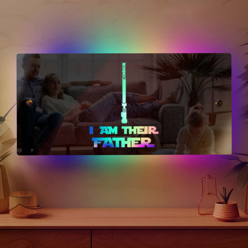 Notre miroir lumineux personnalisé I Am Their Father est une décoration murale en acrylique miroir de qualité supérieure. Ce panneau personnalisé est léger, incassable et disponible en 3 tailles. Après avoir fixé le miroir au mur, le film protecteur doit être retiré pour que la lumière du miroir fonctionne mieux. Cette lampe de miroir est le complément parfait à n'importe quelle chambre, parfaitement intégrée à différents styles de décoration.
