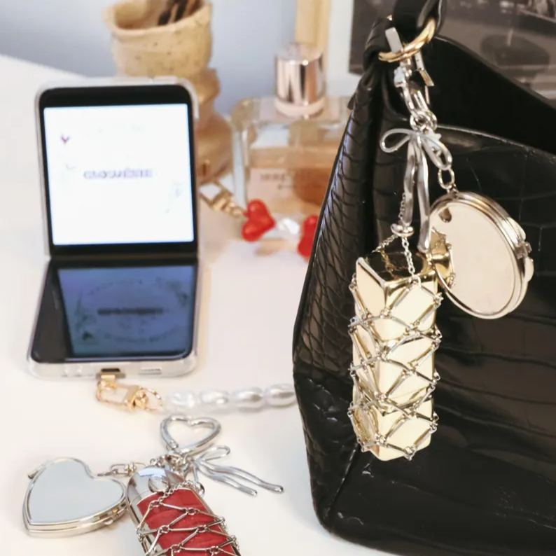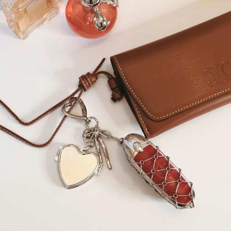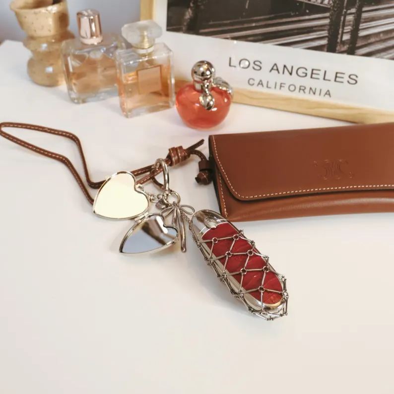 Plus qu'un simple porte-rouge à lèvres : un accessoire polyvalent pour ranger votre baume à lèvres, votre gel hydroalcoolique, votre clé USB et autres petits indispensables. Le joli pendentif en forme de cœur apporte la touche finale.
