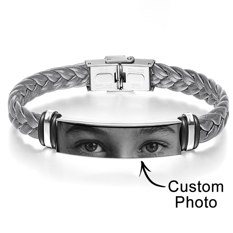 Bracelet personnalisé avec les yeux de l'amant : personnalisez ce bracelet pour homme avec une photo des yeux de votre amoureux, créant ainsi un cadeau profondément personnel qui capture l'essence de votre amour. Ce bracelet pour homme est un souvenir unique et significatif pour votre moitié.
