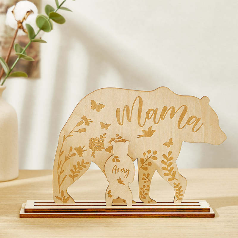 Célébrez l'amour d'une mère avec le cadeau personnalisé de décoration de bureau en bois Maman Ours avec oursons pour maman. Cette magnifique pièce en bois présente un design touchant, personnalisé avec les noms de la maman ourse et de ses petits. Parfait pour n'importe quel bureau, ce cadeau est un rappel sincère du lien entre une mère et ses enfants.