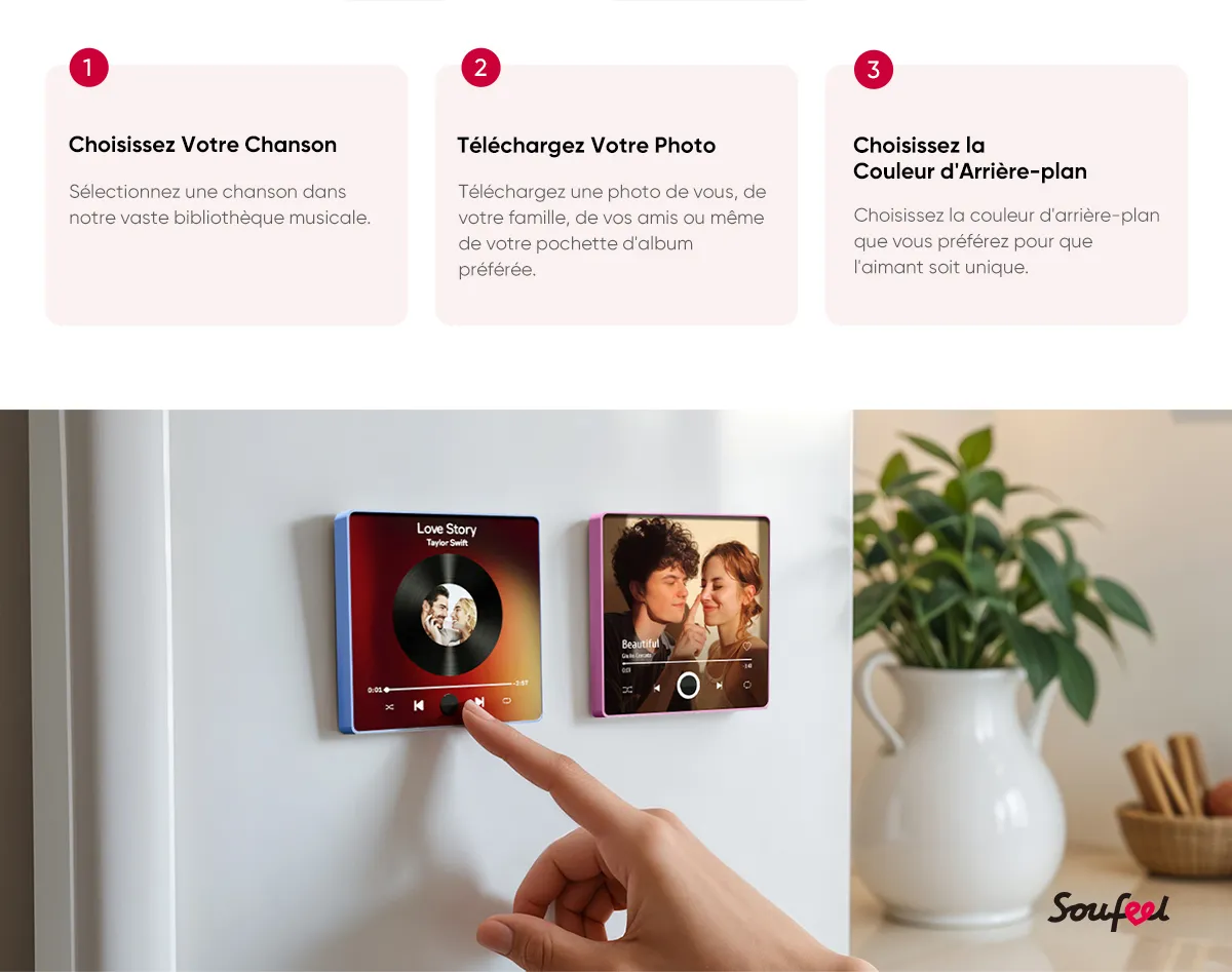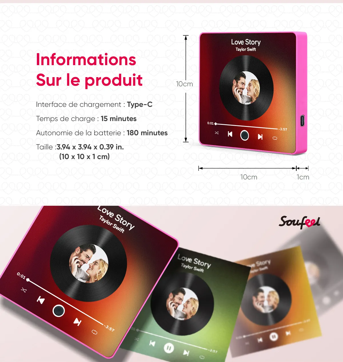 Donnez vie à votre musique préférée avec notre aimant de réfrigérateur album personnalisé ! Cet aimant innovant est plus qu’une simple pièce décorative : c'est un appareil fonctionnel et interactif qui vous permet d'écouter vos chansons préférées directement depuis votre réfrigérateur. Que vous souhaitiez écouter une playlist relaxante tout en cuisinant ou profiter de votre musique préférée tout en prenant une collation, cet aimant pour réfrigérateur rend tout cela possible.