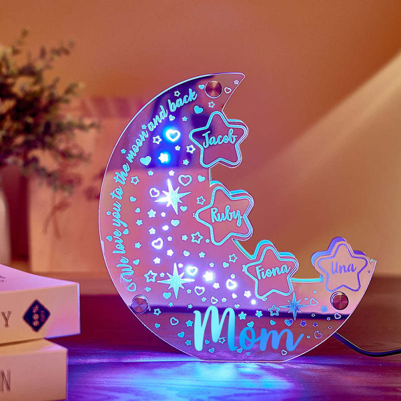 Cette lampe miroir lunaire personnalisée est le cadeau parfait pour les mamans ! Personnalisez-le avec le nom d'un membre de la famille pour une touche unique. Les lumières LED créent une ambiance chaleureuse et réconfortante dans n'importe quelle pièce. Célébrez maman avec style avec ce cadeau attentionné et unique en son genre.