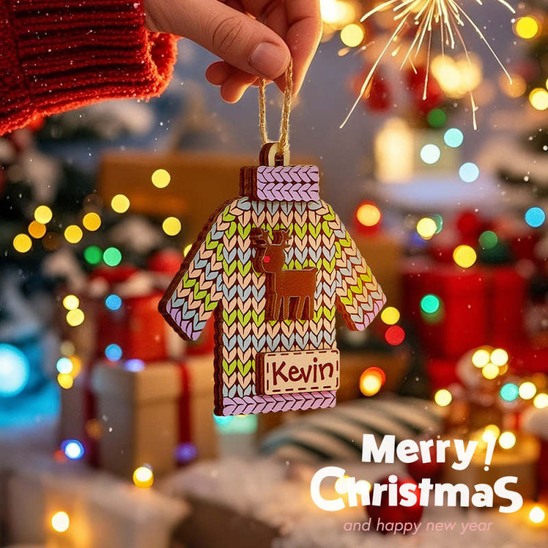 Cette décoration de Noël personnalisée est un ajout unique à votre décor de vacances. Fabriqué avec un bonnet d'hiver, une moufle de Noël et un pull-over, il peut être personnalisé avec le nom de votre choix. Parfait pour ajouter une touche personnelle à votre sapin de Noël ou comme cadeau spécial pour un être cher.