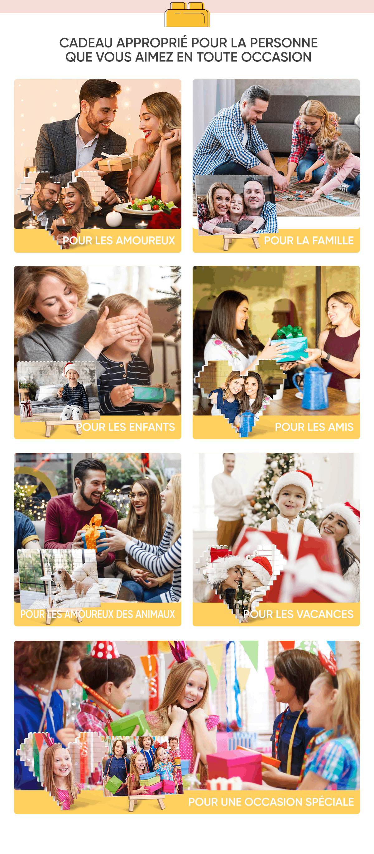 Ces puzzles de briques personnalisés seraient un cadeau surprise pour Papy. C'est le cadeau idéal pour un anniversaire ou la fête des pères. Qui que ce soit, ces grands blocs photo constituent le cadeau idéal.